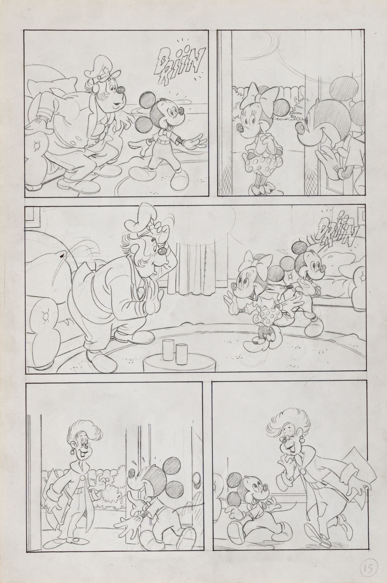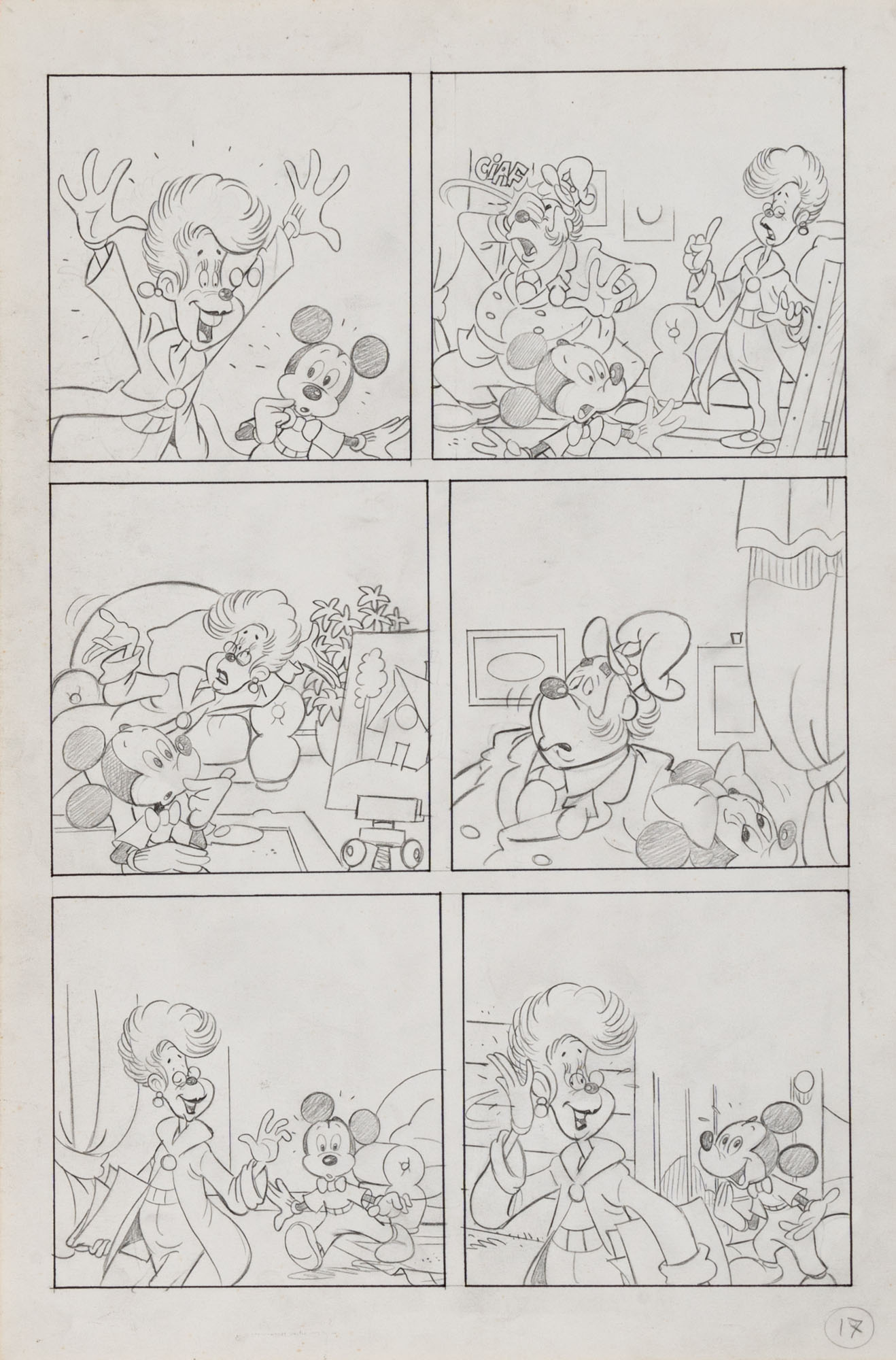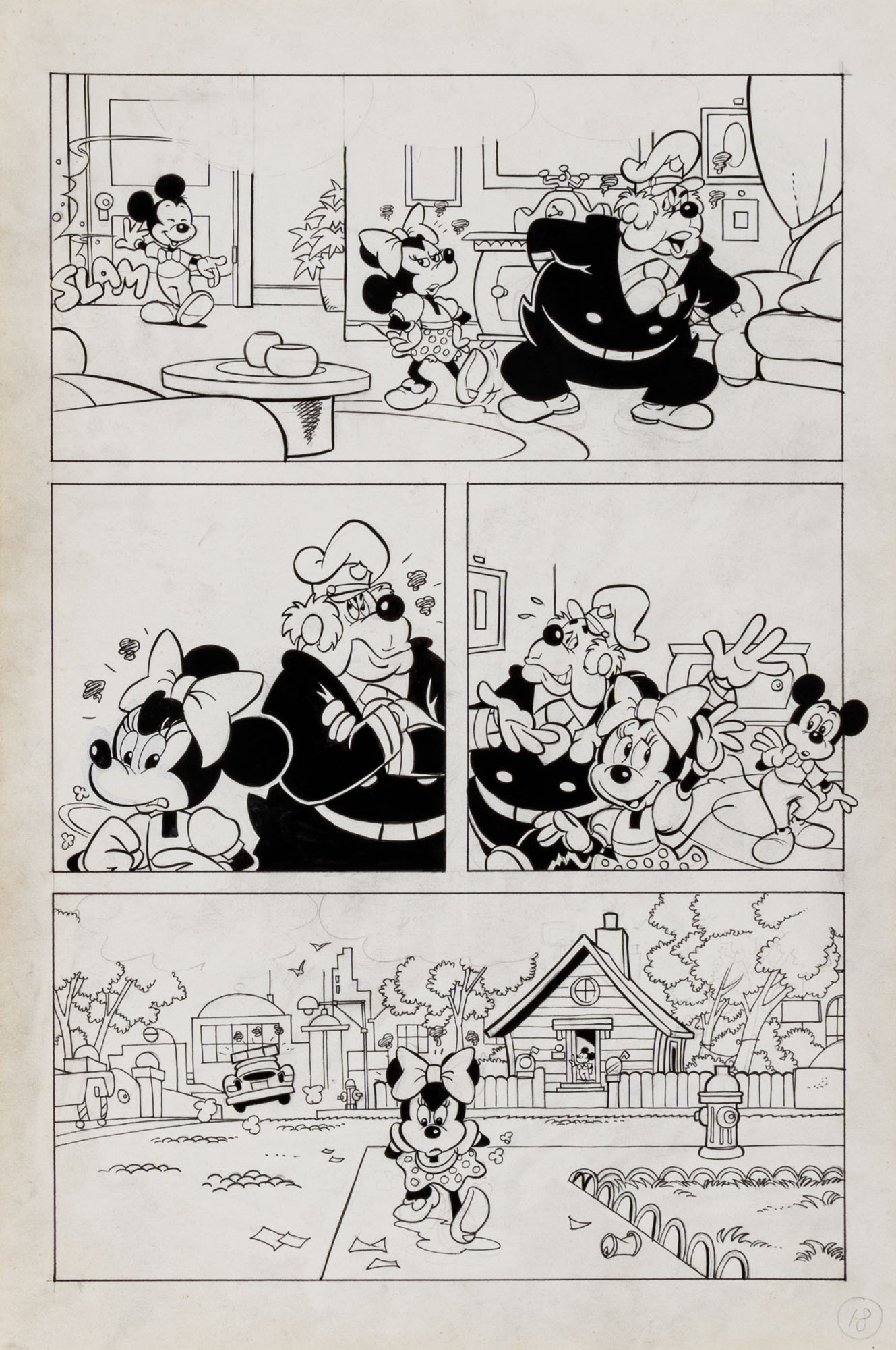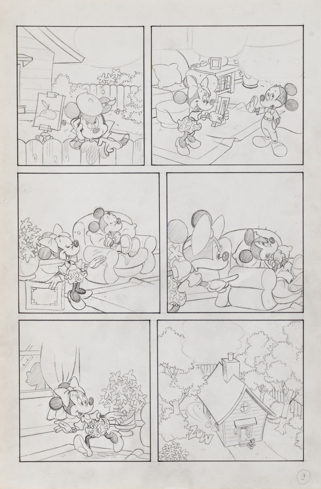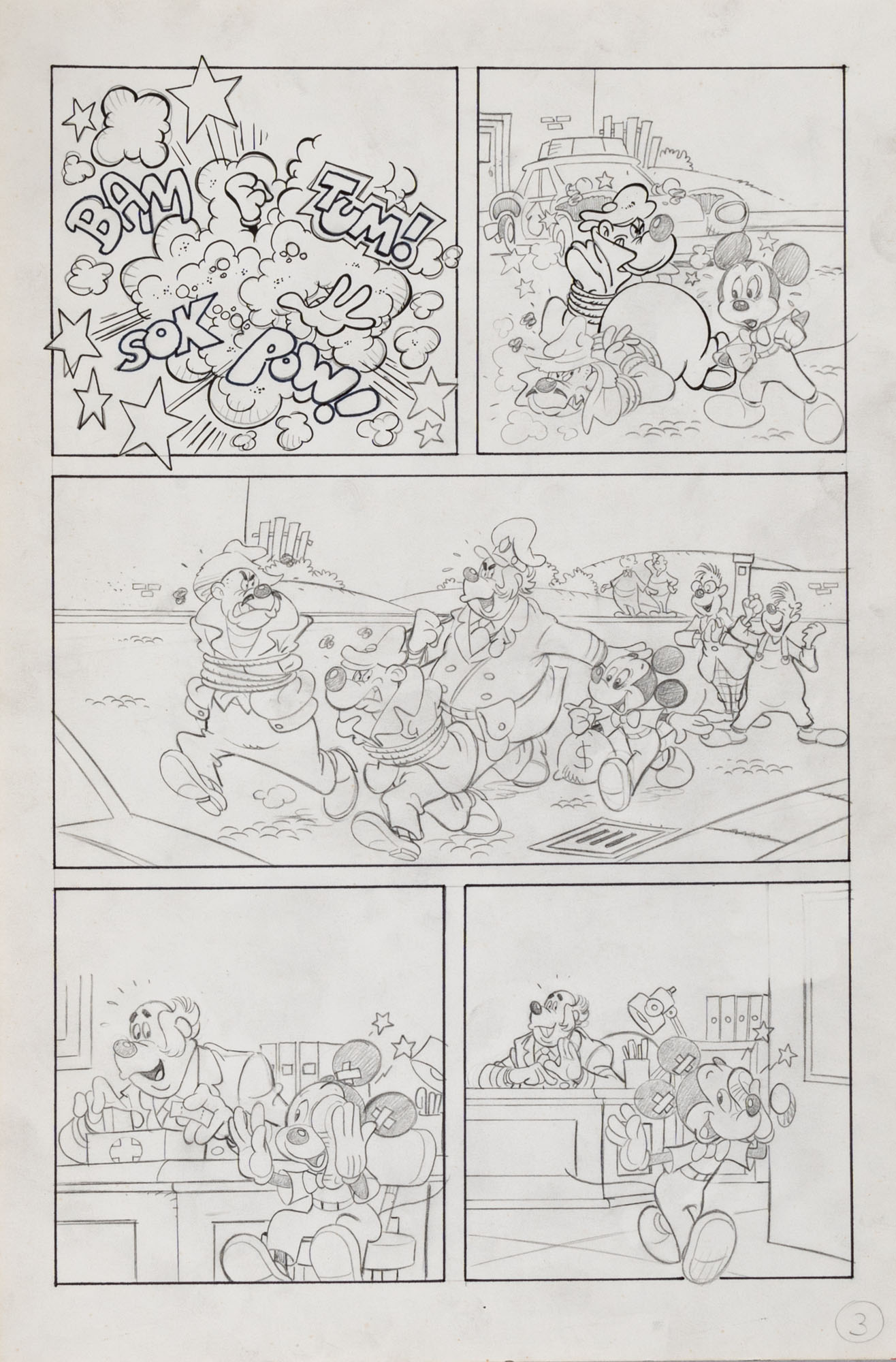 MONTANARI GIUSEPPE, PICCOLI CLAUDIOTopolino e l'hobby obbligatorio, storia inedita in 40 tavole1993China su cartaOgni tavola misura 36 x 24 cmLa tavola n. 4 è mancante, numerose pagine alternative e 27 prove di stampaQuesta storia risulta inedita in quanto pubblicata su Topolino libretto 1938, ma disegnata da Sandro Del Conte