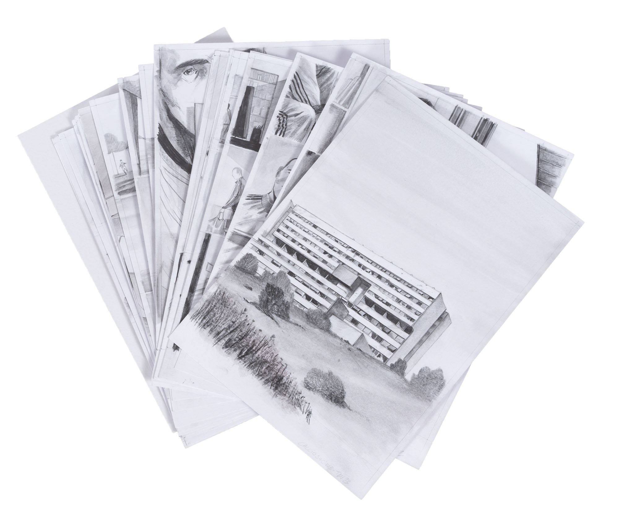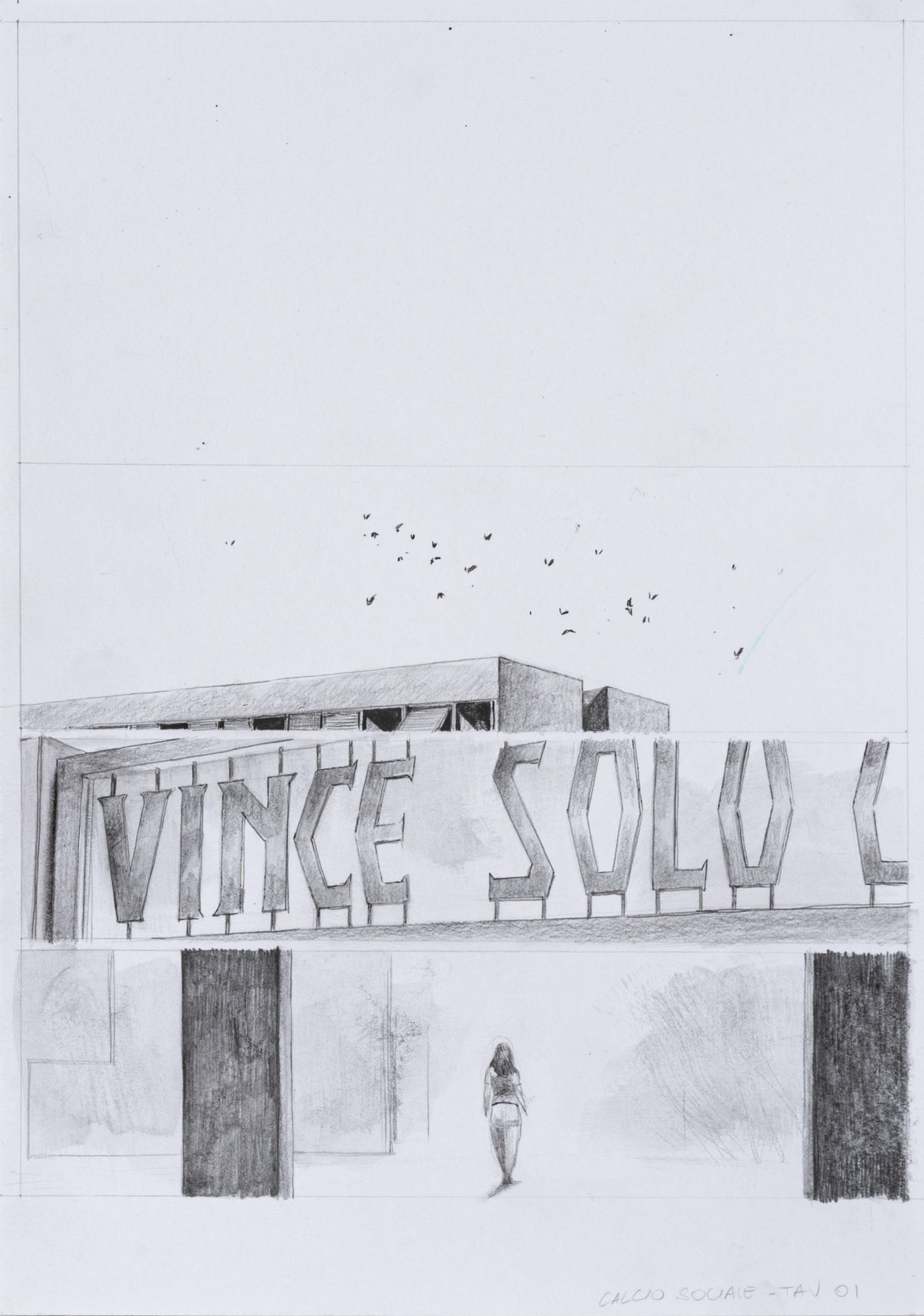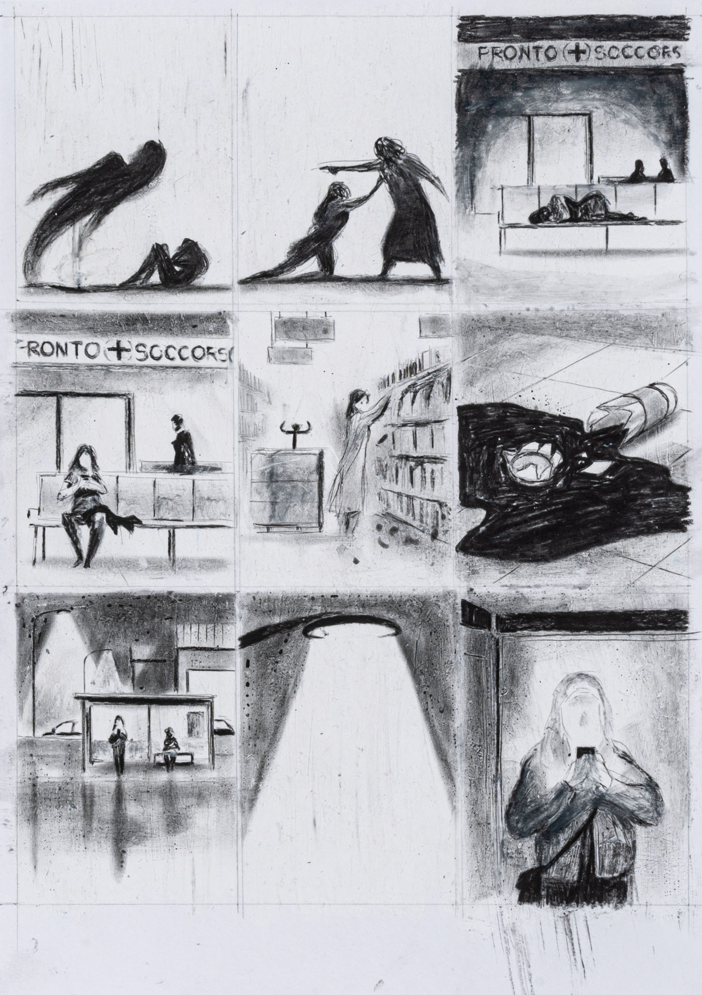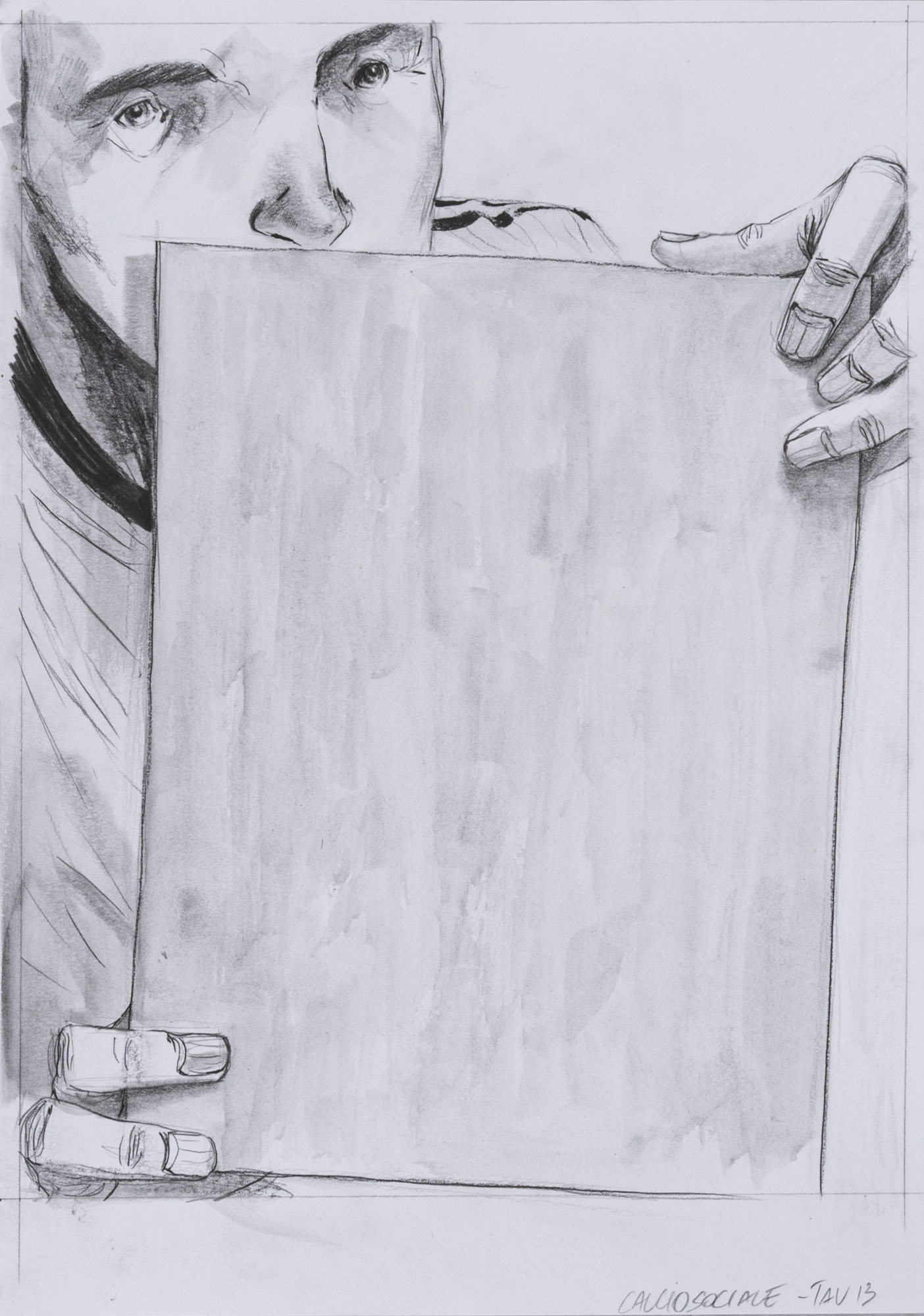 PAOLO CASTALDI(1982)Calcio Sociale, storia completa in 23 pagine con copertina2022Matita, grafite acquerellabile e pastello a olio su cartaOgni tavola misura 29,5 x 21 cmTesti di Francesca Mannocchi, pubblicato per il n. 1 de La Revue Dessinéè Italia