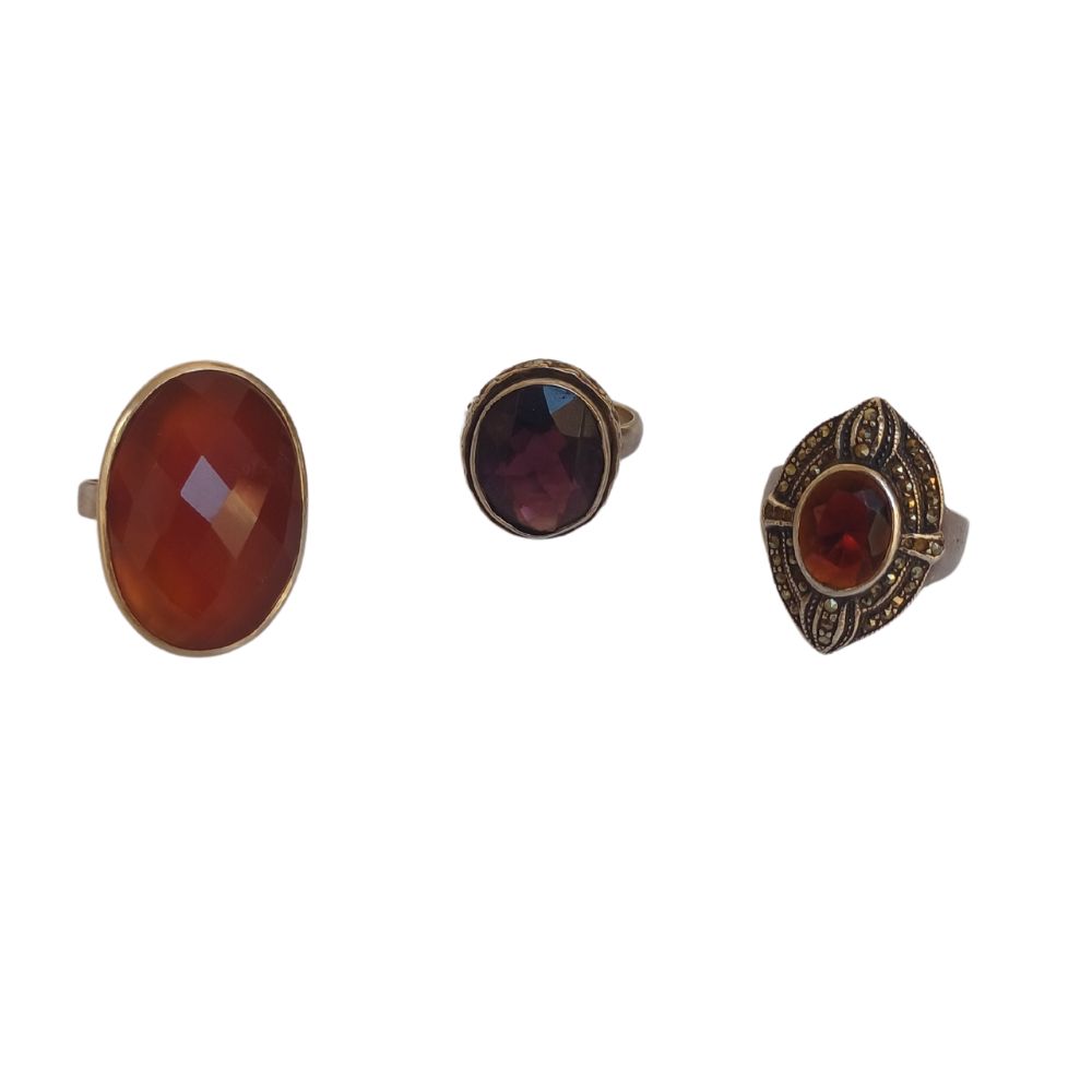Lotto di tre anelli in argento 925, XIX/XX secolo.