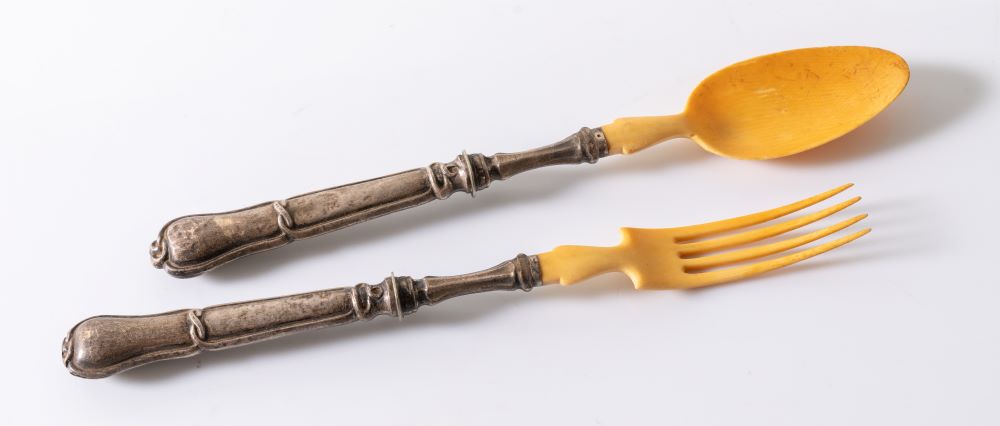 Set cucchiaio e posata da insalata, fine XIX - XX secolo.