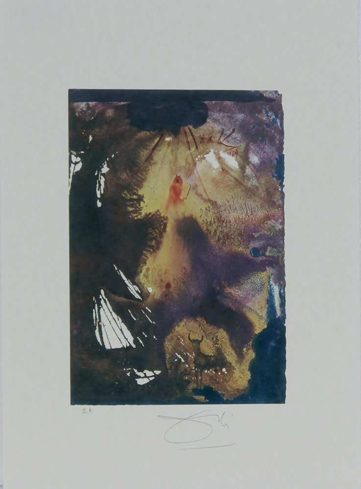 Dalì Salvador Senza titolo litografia su carta, cm. 45x32, es. E.A. firmata in basso a destra, timbro a secco in basso a sinistra, Edición Gaceta Española de Arte Contemporáneo di Madrid senza cornice