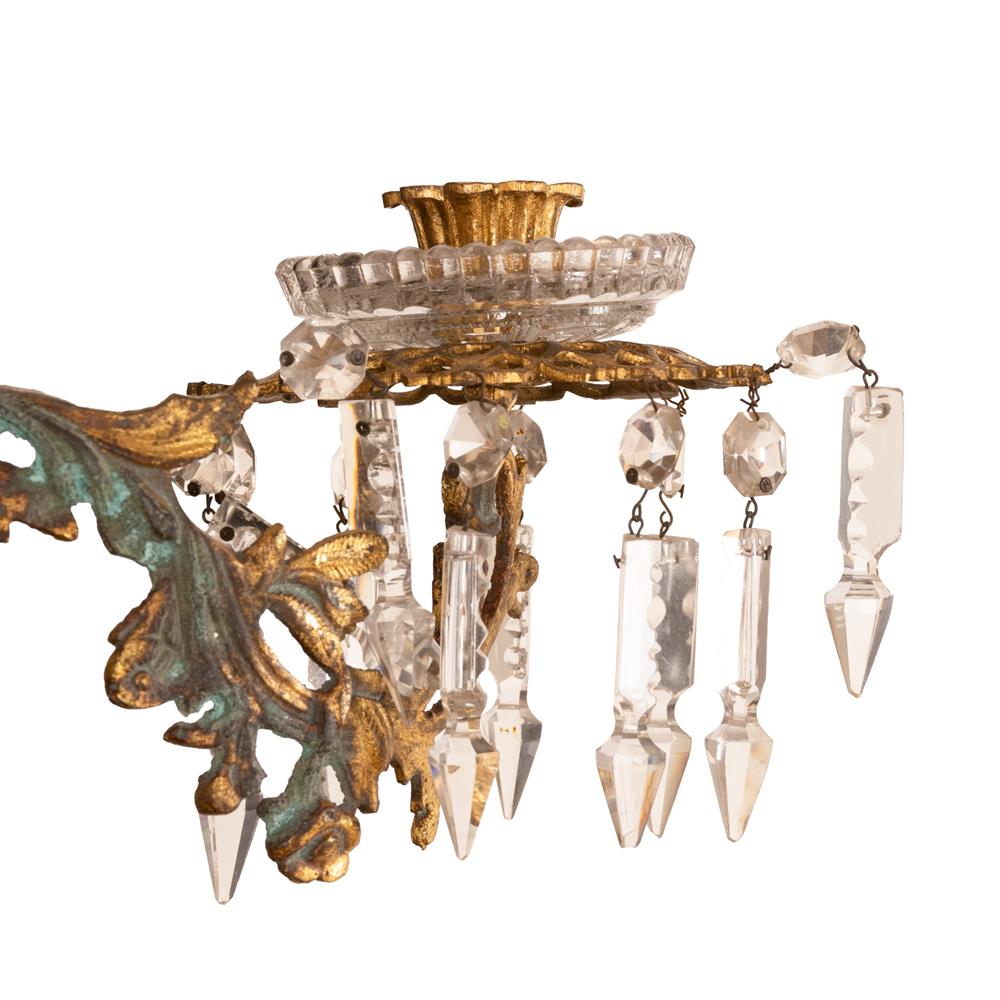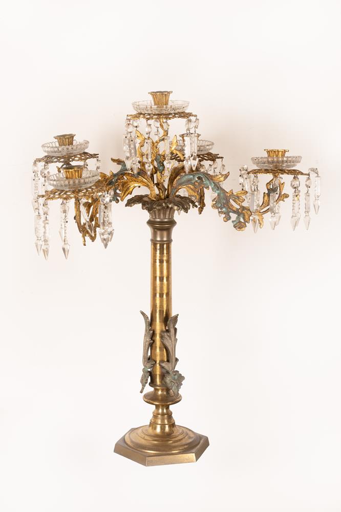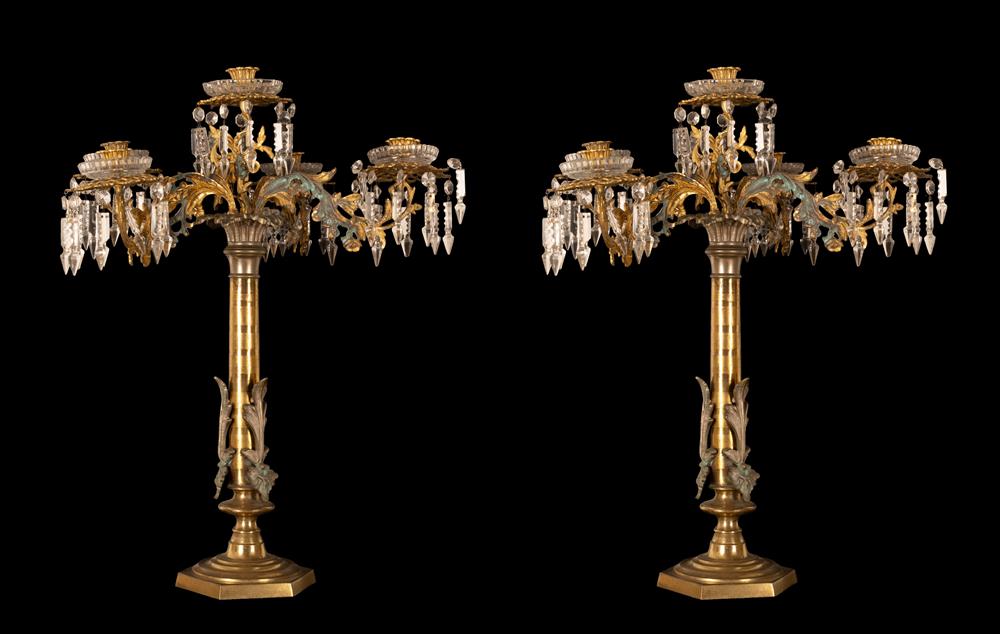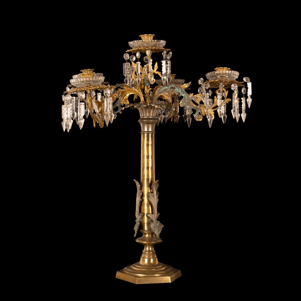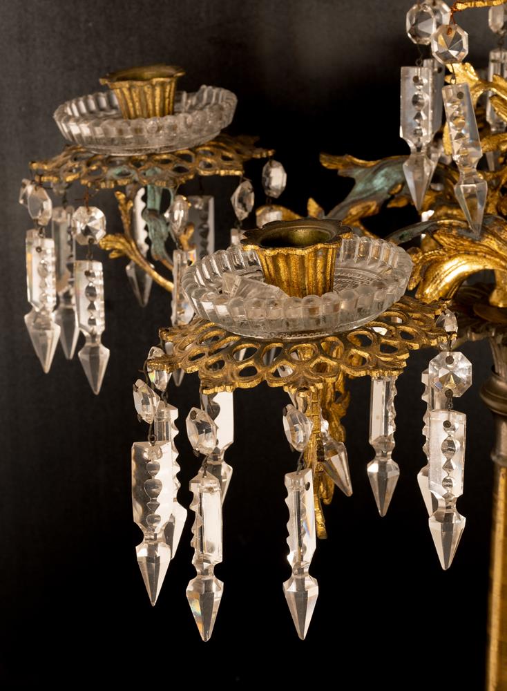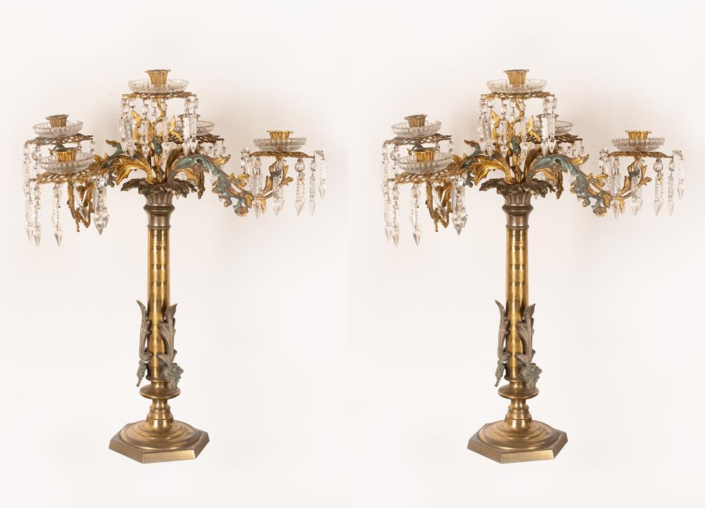 Coppia di candelieri in bronzo e cristallo Manifattura Italiana del XIX secolo