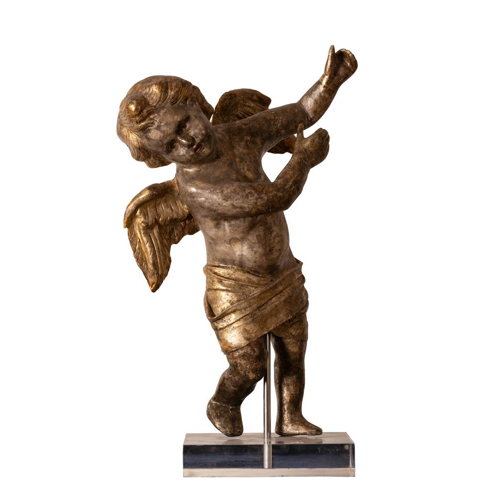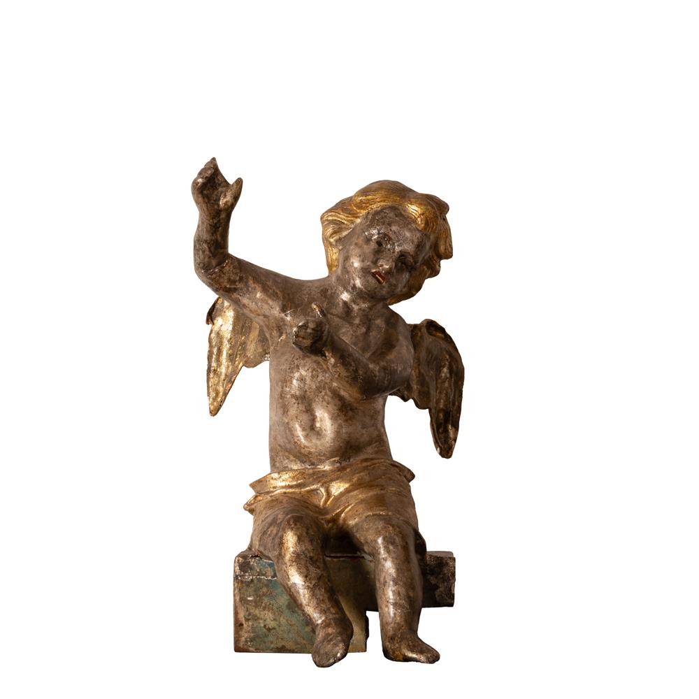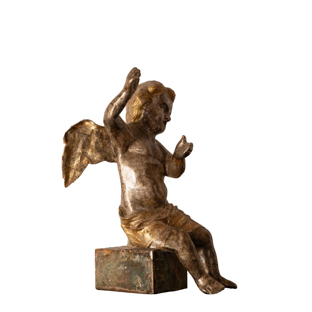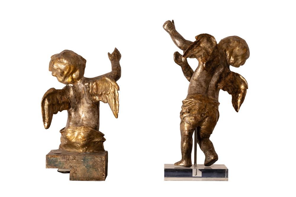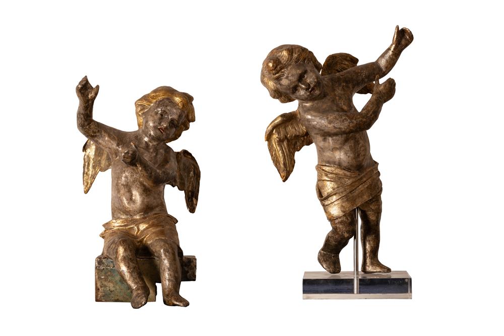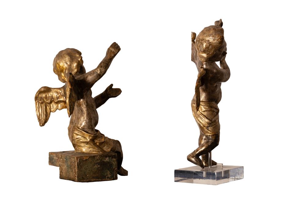 Coppia di putti in cartapesta argentata e dorata Manifattura dell'Italia centrale del XVIII secolo
