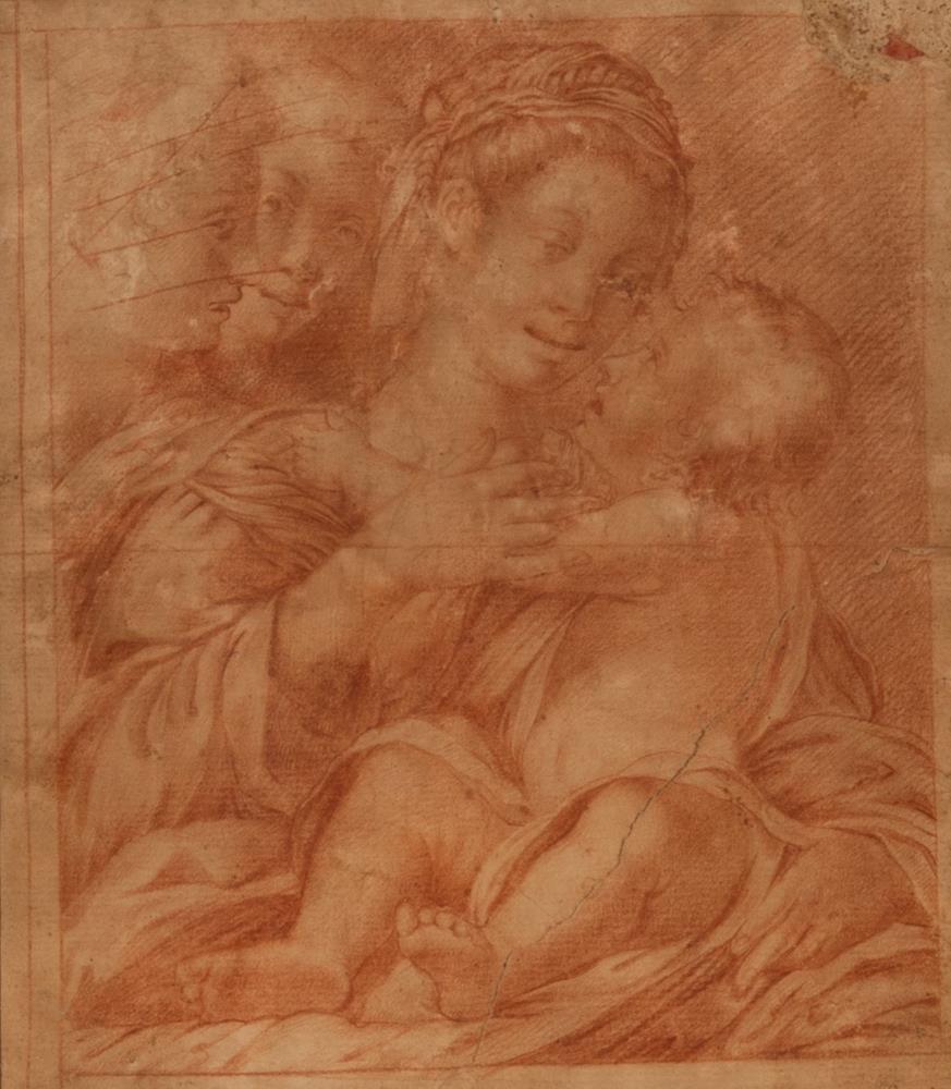 Sanguigna raffigurante donna con bambino e due figure XVII secolo