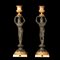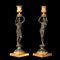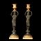 Coppia di candelabri Grand Tour in bronzo brunito e bronzo dorato, raffiguranti ancelle egizie stanti a sorreggere grandi vasi.