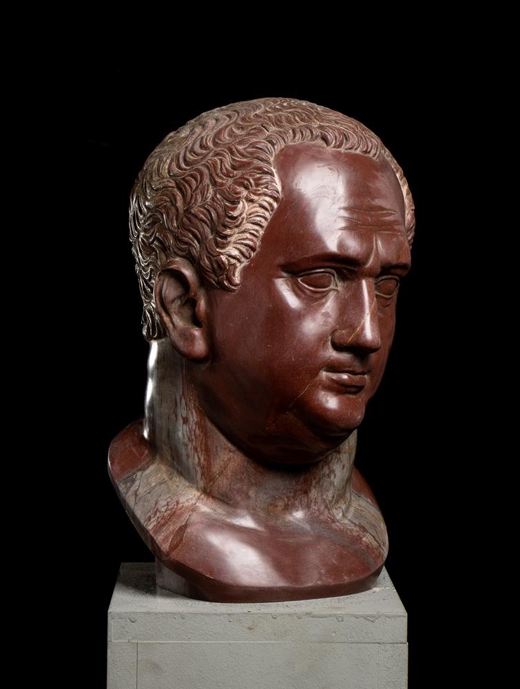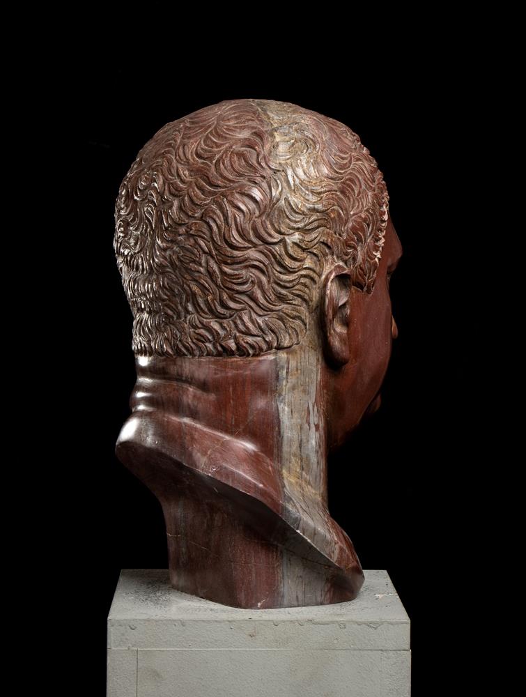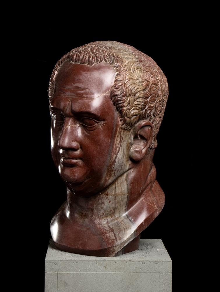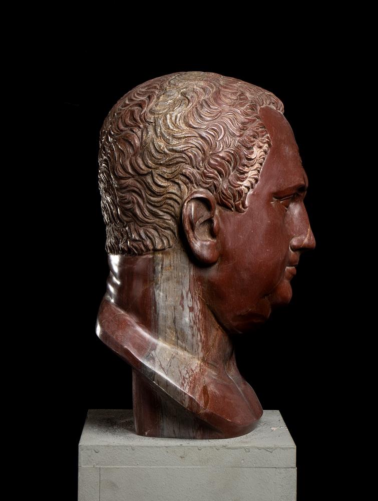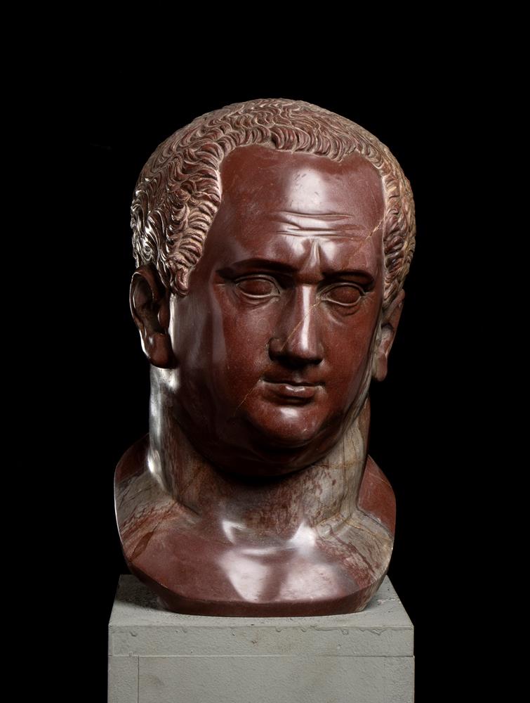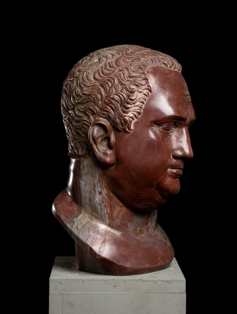 Testa dell’imperatore Vitellio in marmo rosso antico. Scultore romano del XX secolo