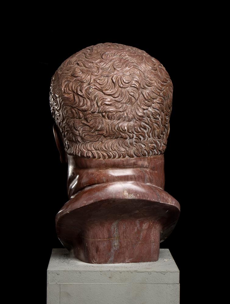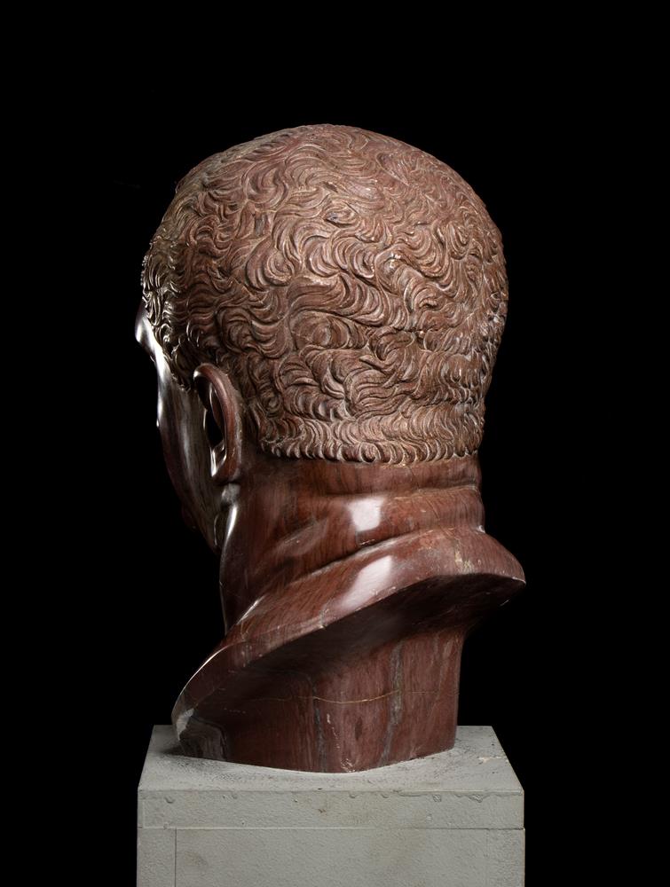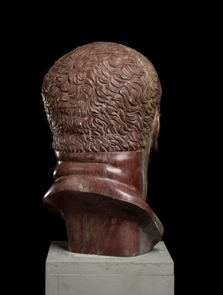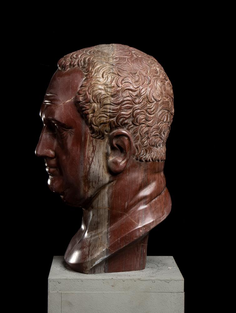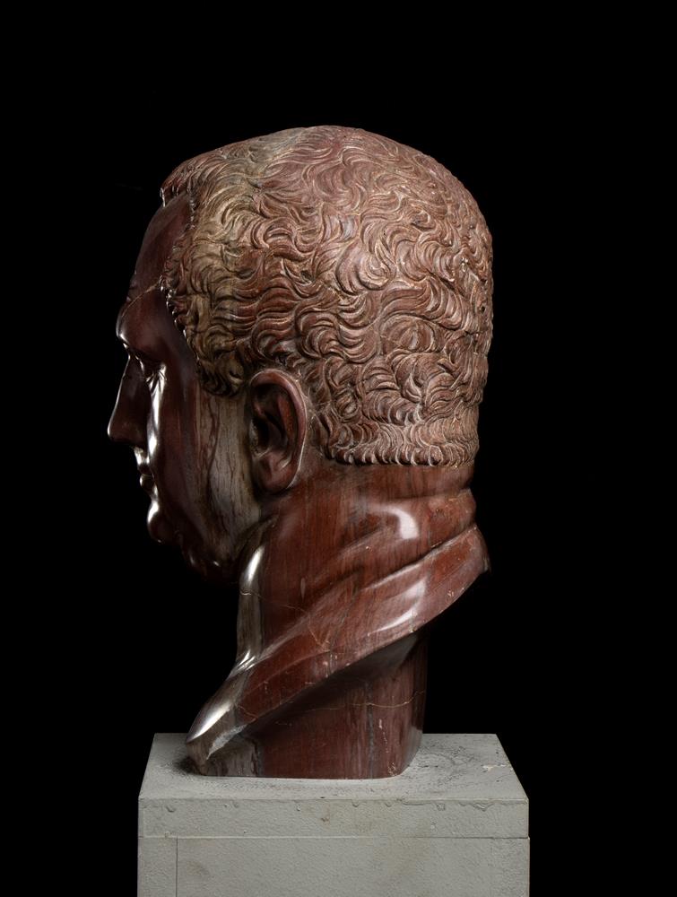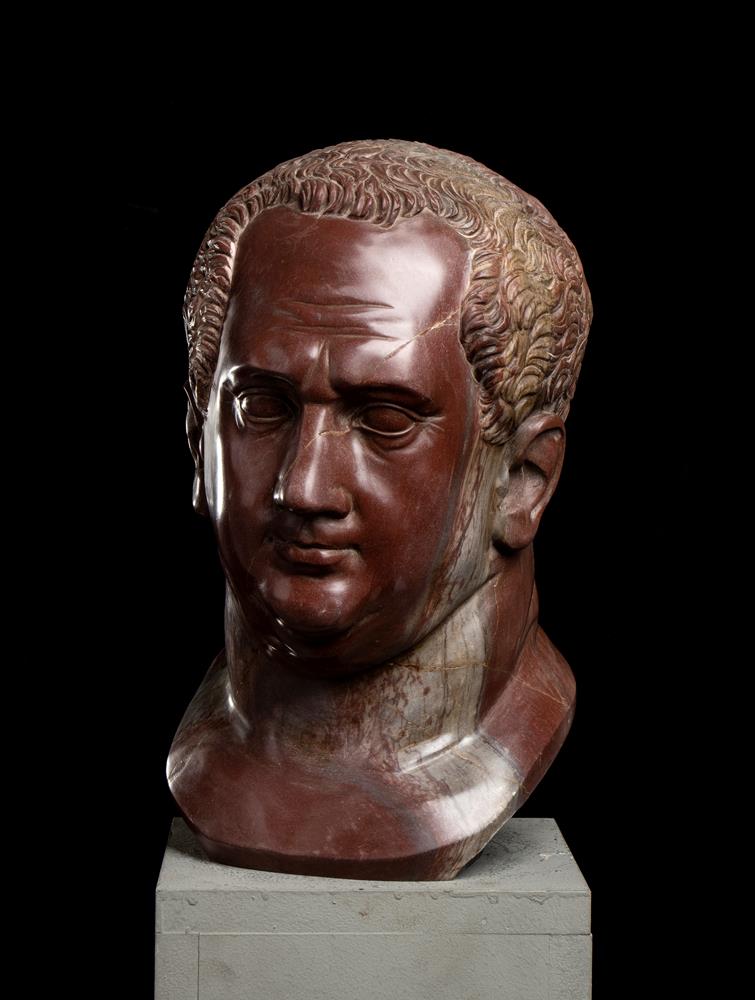 Testa dell’imperatore Vitellio in marmo rosso antico. Scultore romano del XX secolo