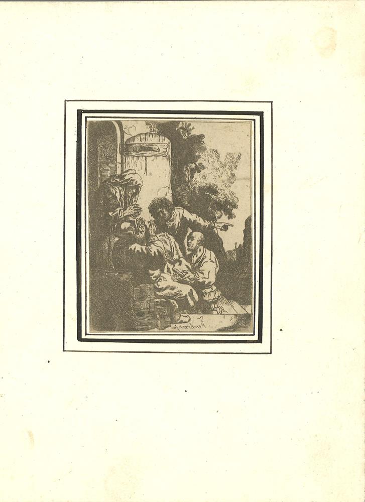 incisione cm 10,5x8 In basso speculare Rembrandt fecit