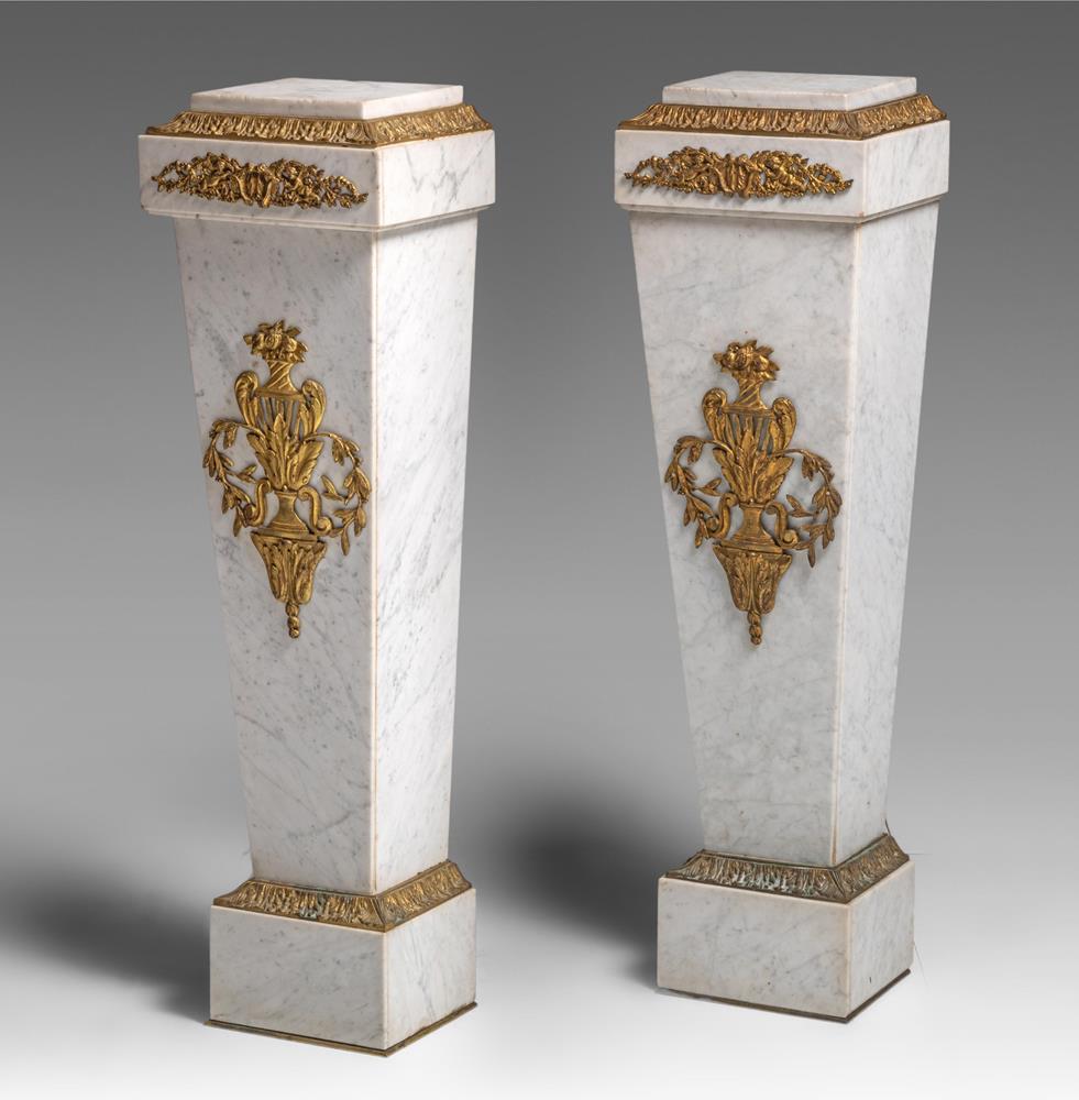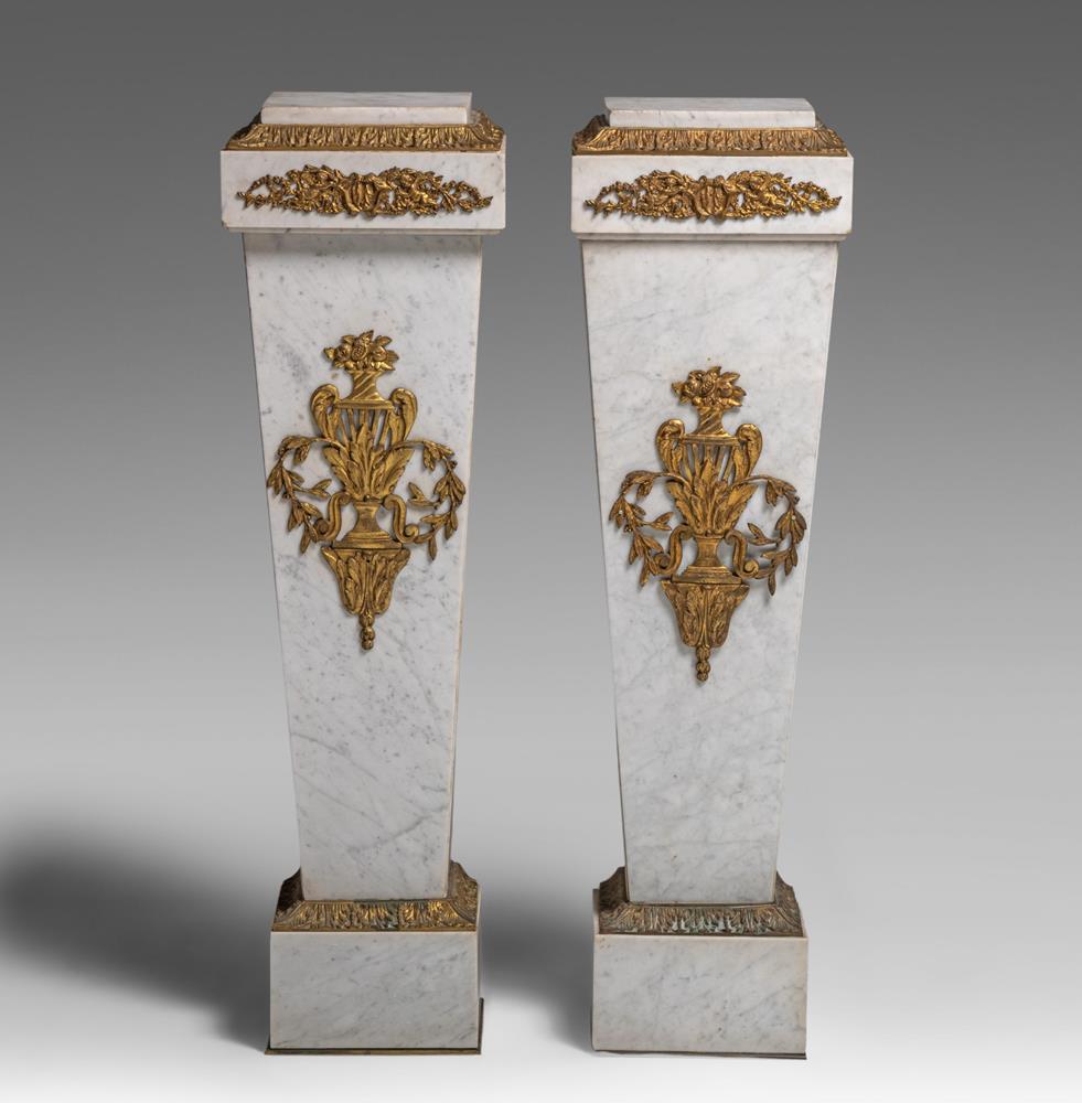 Lotto 229 | Coppia di erme placcate in marmo di Carrara con fregi in bronzo dorato.