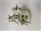 Composizione in porcellana bianca con inserti policromi di fiori raffigurante tre putti che suonano, uno la tromba, l'altro il mandolo e uno con fiore in mano, poggianti su una ringhiera.