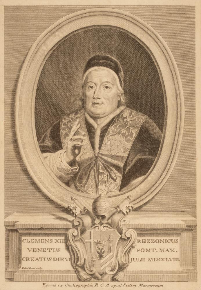 Incisione raffigurante Papa Clemente XIII Rezzonico