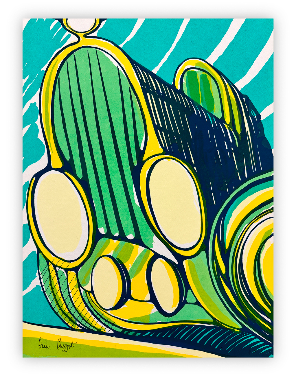 Opera originariamente facente parte della cartella "Vecchia Auto", Edizioni Officina d'Arte Grafica Lucini, Milano
