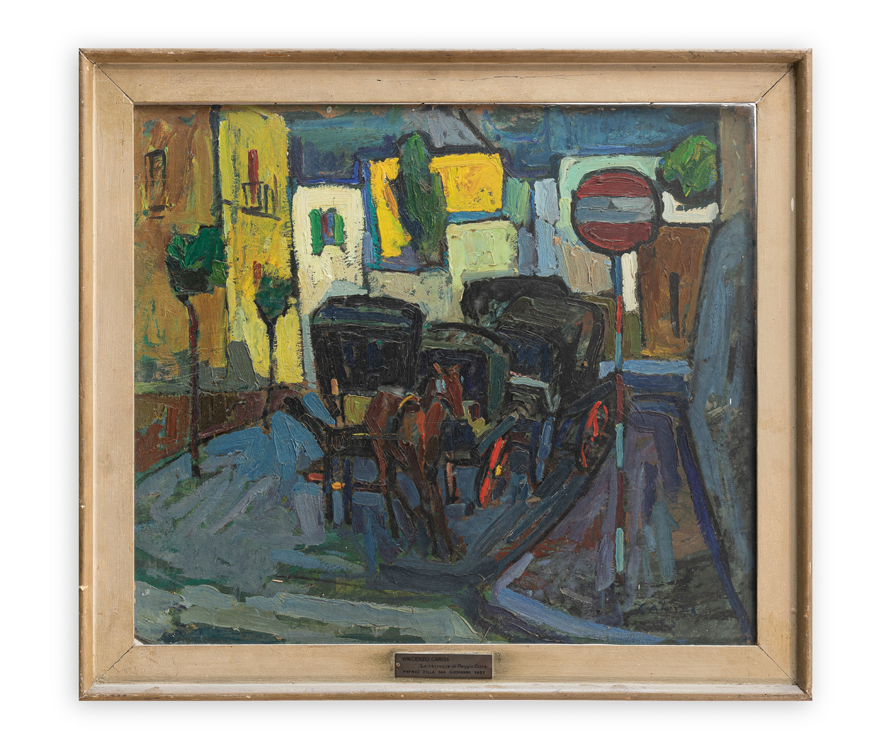 VINCENZO CARIDI (1913-1989) - Le carrozze (città di Reggio), 1957