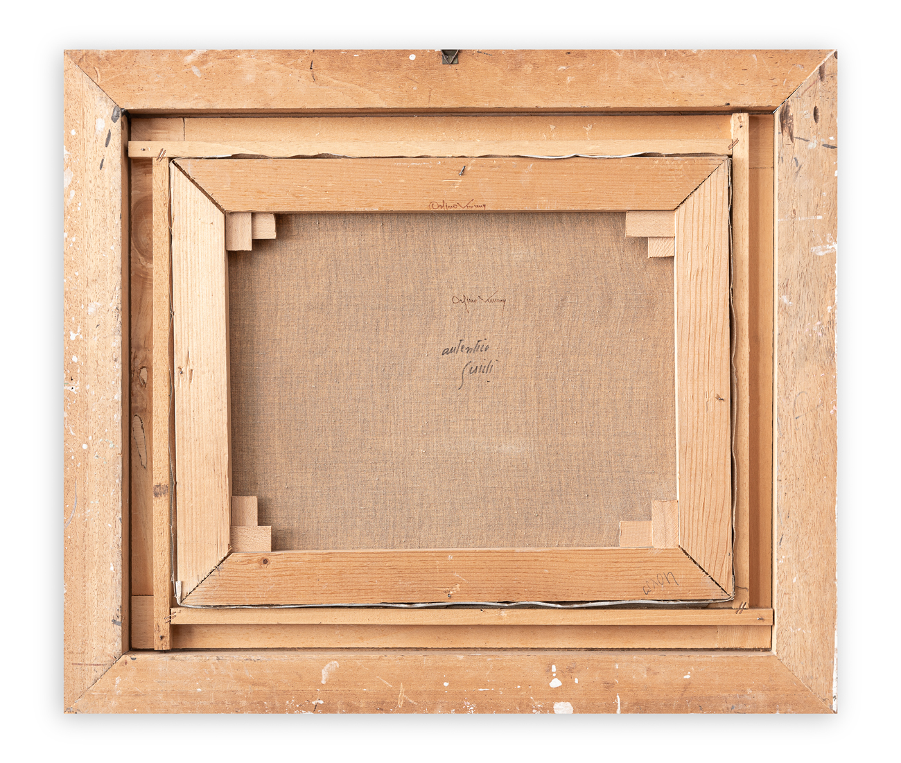 Firma di Vincenzo Orfino della Galleria d'Arte Moderna Vincenzo Orfino (VE) al retro sulla tela e sul telaio