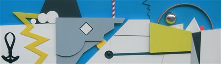 Del Pezzo Lucio Il muro dell’arcobaleno, 1971 metallo verniciato e plastica, cm. 54x177x8 firmato in basso sinistra, certificato di autenticità dell'artista su fotografia, opera pubblicata su “L. Del Pezzo” a cura di G. Dorfles, pag. 78/79 senza cornice
