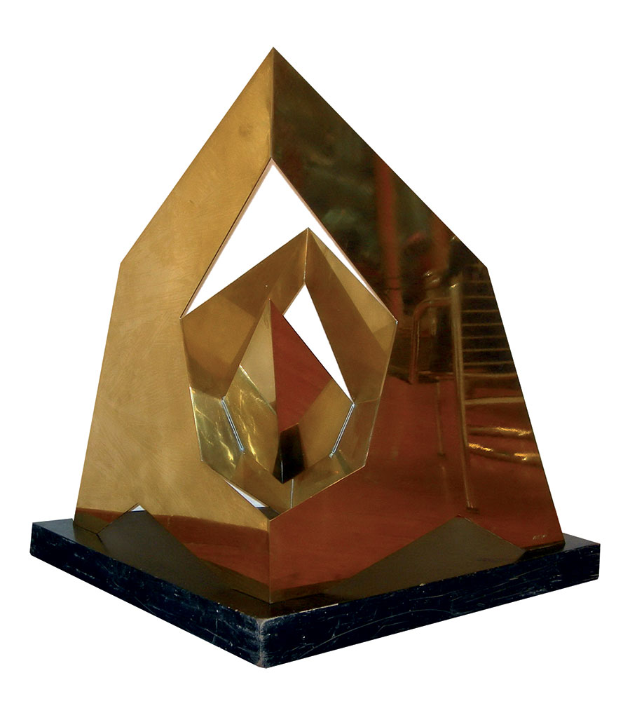 Munari Bruno Scultura da viaggio, 1958/1989 ca. scultura in ottone dorato, cm. 84,4x66,5x96 firmata in basso a destra, certificato di autenticità di Alberto Munari