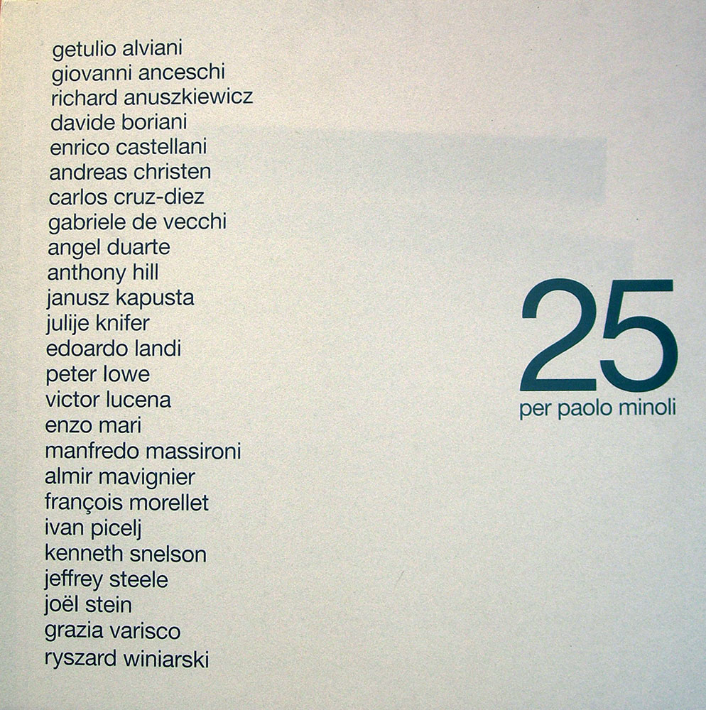 AA.VV. 25 per Paolo Minoli cartella contenenente 25 litografie di altrettanti artisti numerate e firmate a mano dagli autori cm. 50x50, edizione es. 48/125 firmata alla base