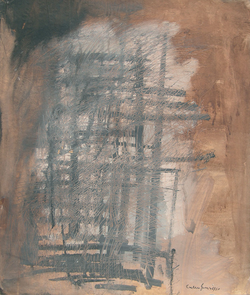 Guenzi Costantino Senza titolo, 1970 tecnica mista su carta, cm. 68x58 firmato e datato in basso a destra, perizia della galleria Conte Arte su fotografia