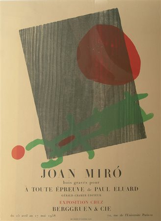Mirò Joan Senza titolo, 1958 affiche su cartoncino a colori originale, cm. 52x39