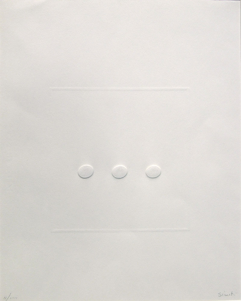 Simeti Turi Calcografia (bianco) calcografia, cm. 50x40, es. III/VIII firmata in basso a destra, certificato di autenticità dell'artista su fotografia