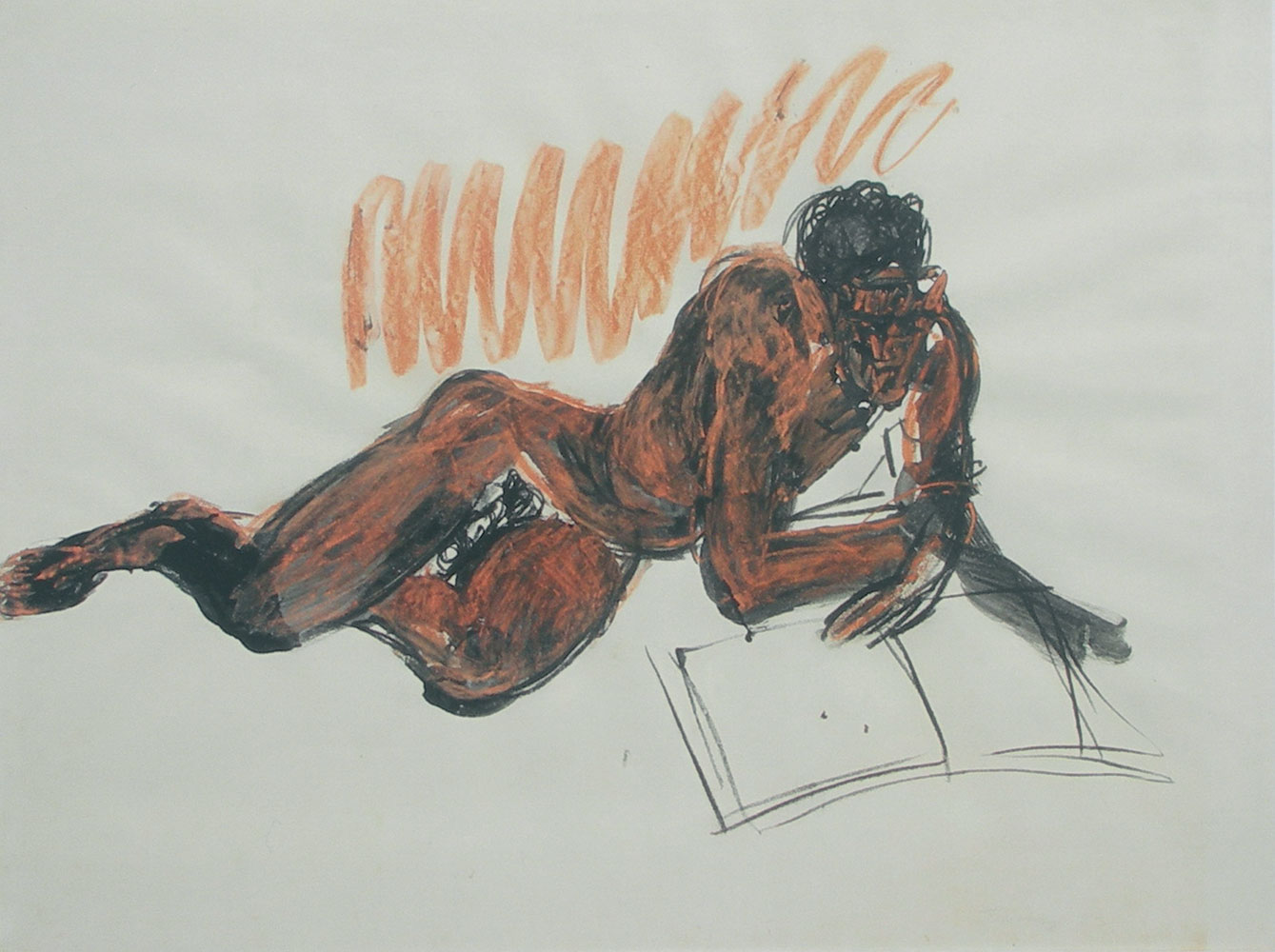 Fetting Rainer Figura sdraiata, 1983 tecnica mista su cartoncino, cm. 108x143 opera pubblicata su S. Fontana "Da Grosz a Kiefer percorsi nell'arte tedesca", Lattuada Studio, Milano, 30/11/2006 - 15/01/2007, p. 37 e F. Caliso "Contemporanea Cafiso 96" Galleria d'Arte Cafiso, Milano, 1996, p. 30