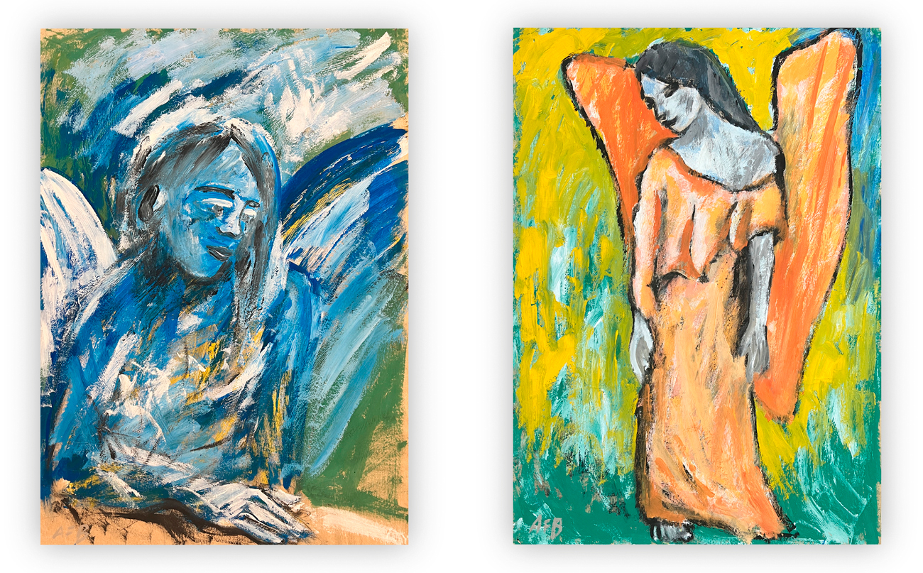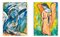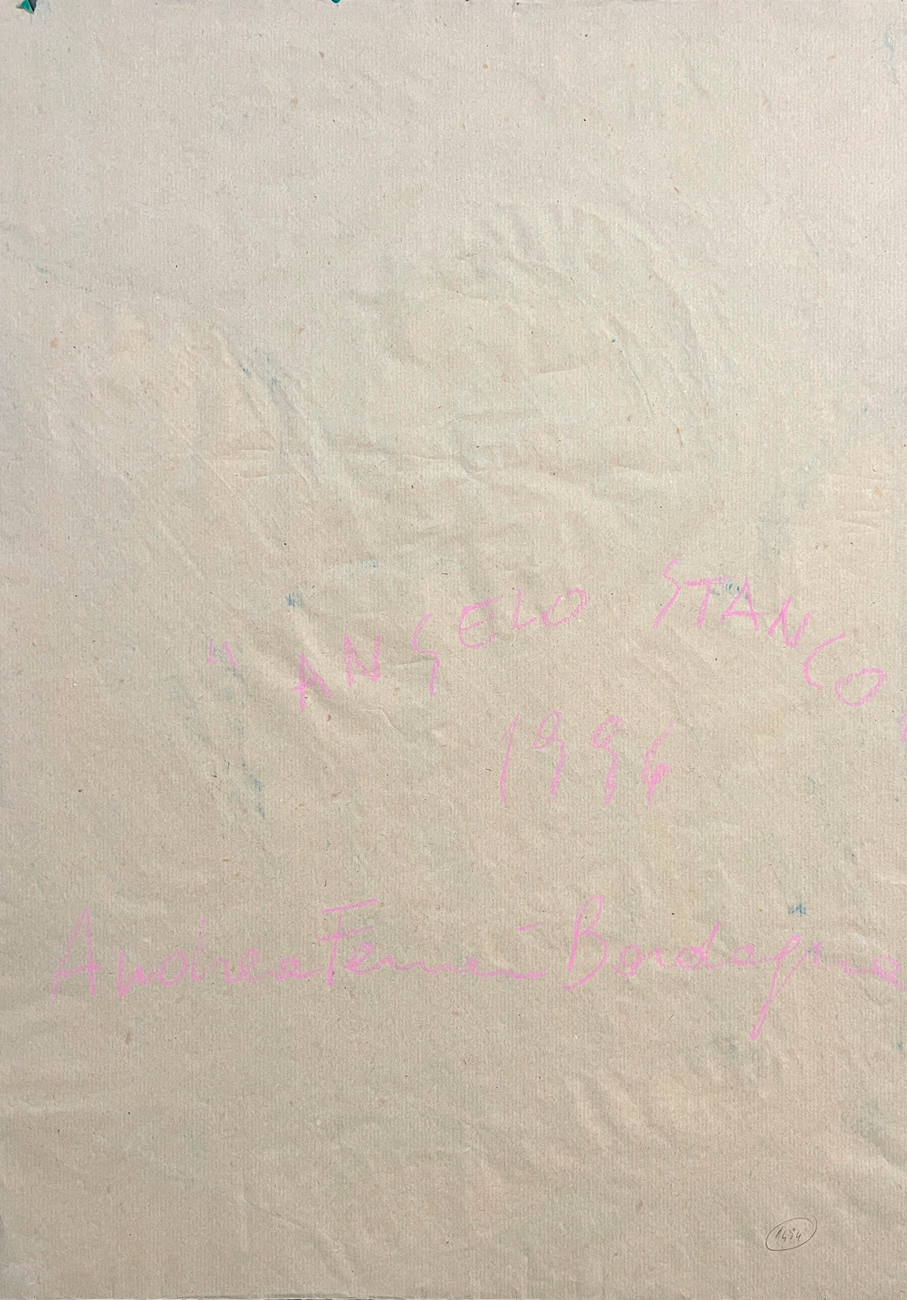 Lotto unico di 2 tecniche miste su carta da pacchi, ciascuna recante firma indecifrata, datazione (1996) e titolo al retro