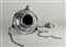 A chased silver sanctuary lamp with matching red glass candle holder, on three silver chains. 19th century. Weight 41 grams.