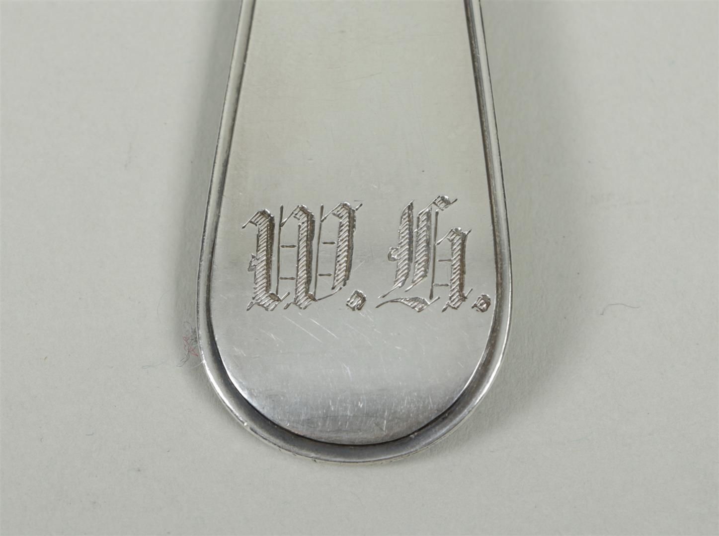 A silver cutlery set for six consisting of a fork, a knife, and a spoon. 19th century.