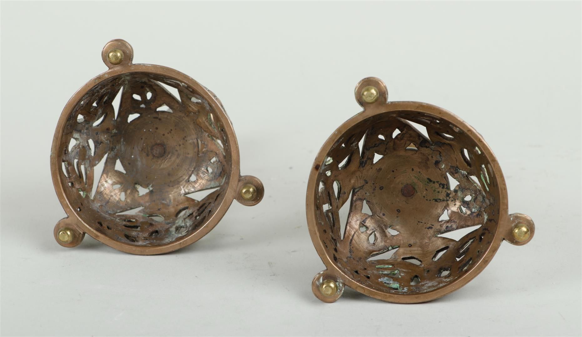 A lot of two bronze candlesticks. Early 20th century. H. 14,5 cm.