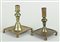 A lot of two Spanish brass candlesticks on a square base and legs, 17th/18th...