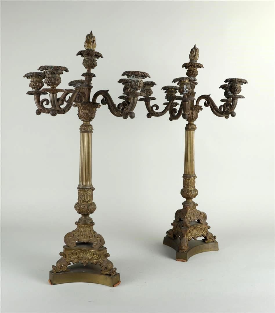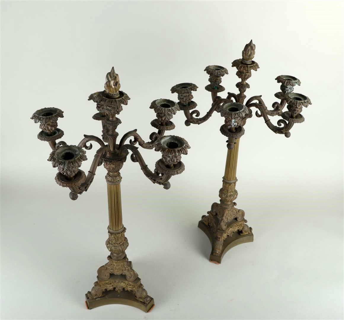 A set of (2) six-armed bronze candlesticks, France 19th century.