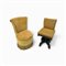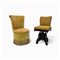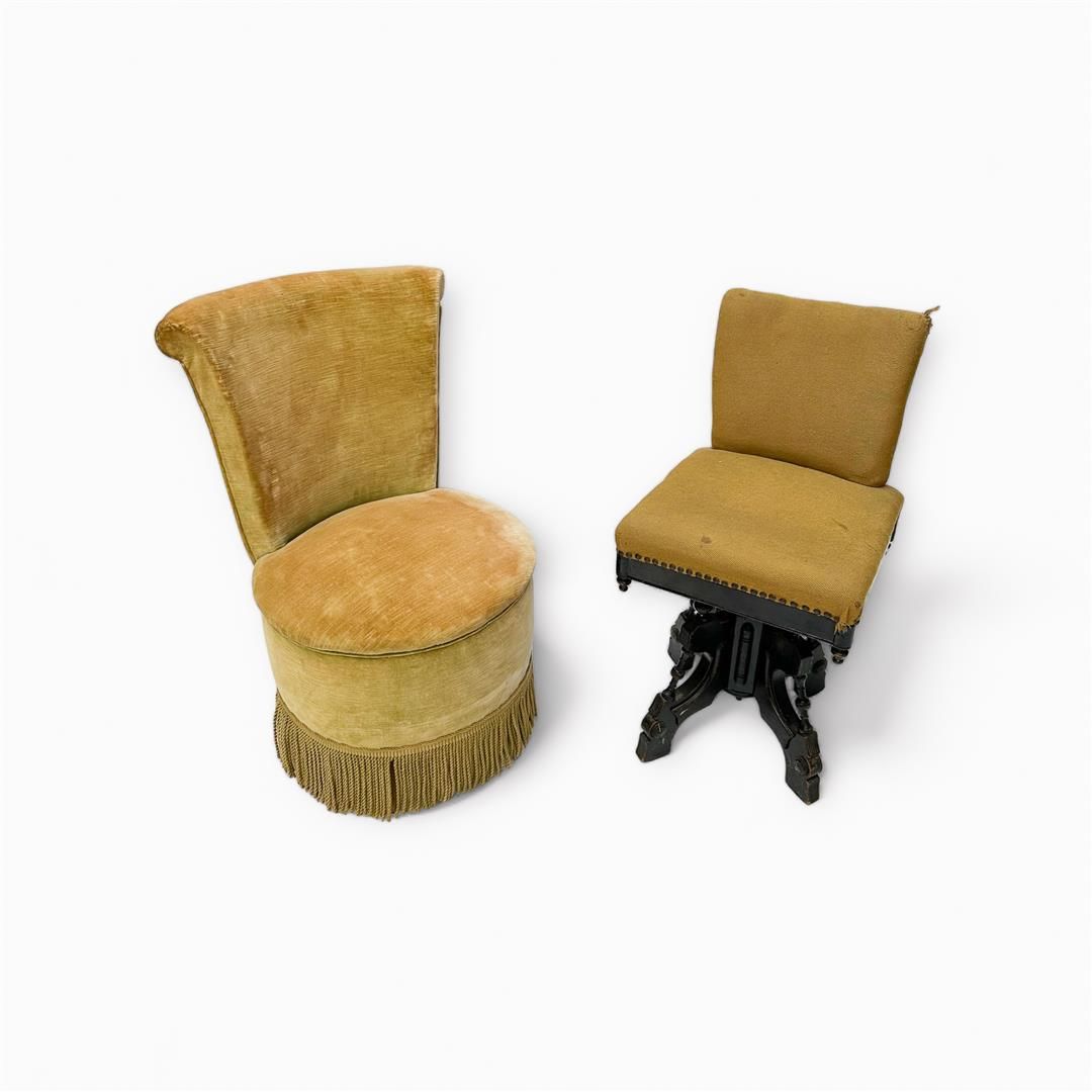 An adjustable piano chair upholstered in yellow fabric on a blackened wooden leg, and a matching cocktail / ladies' armchair. Resp. 19th, and early 20th century.