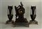 An Art Nouveau Garniture de Cheminée on a marble base with brass mounts....