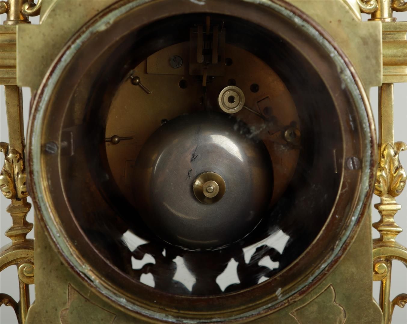 A bronze Garniture de Cheminée, timepiece addressed 'France & Chastant'....
