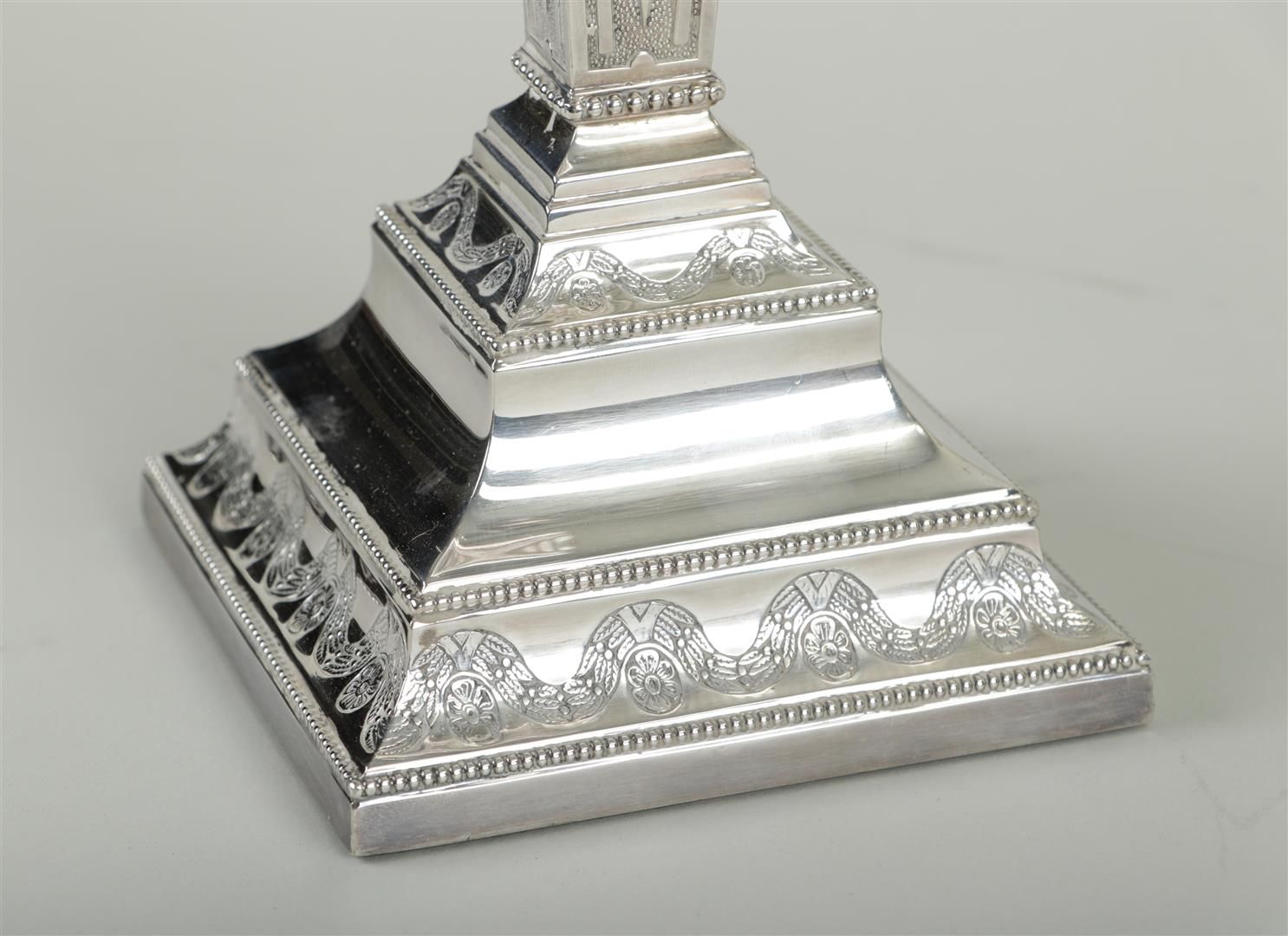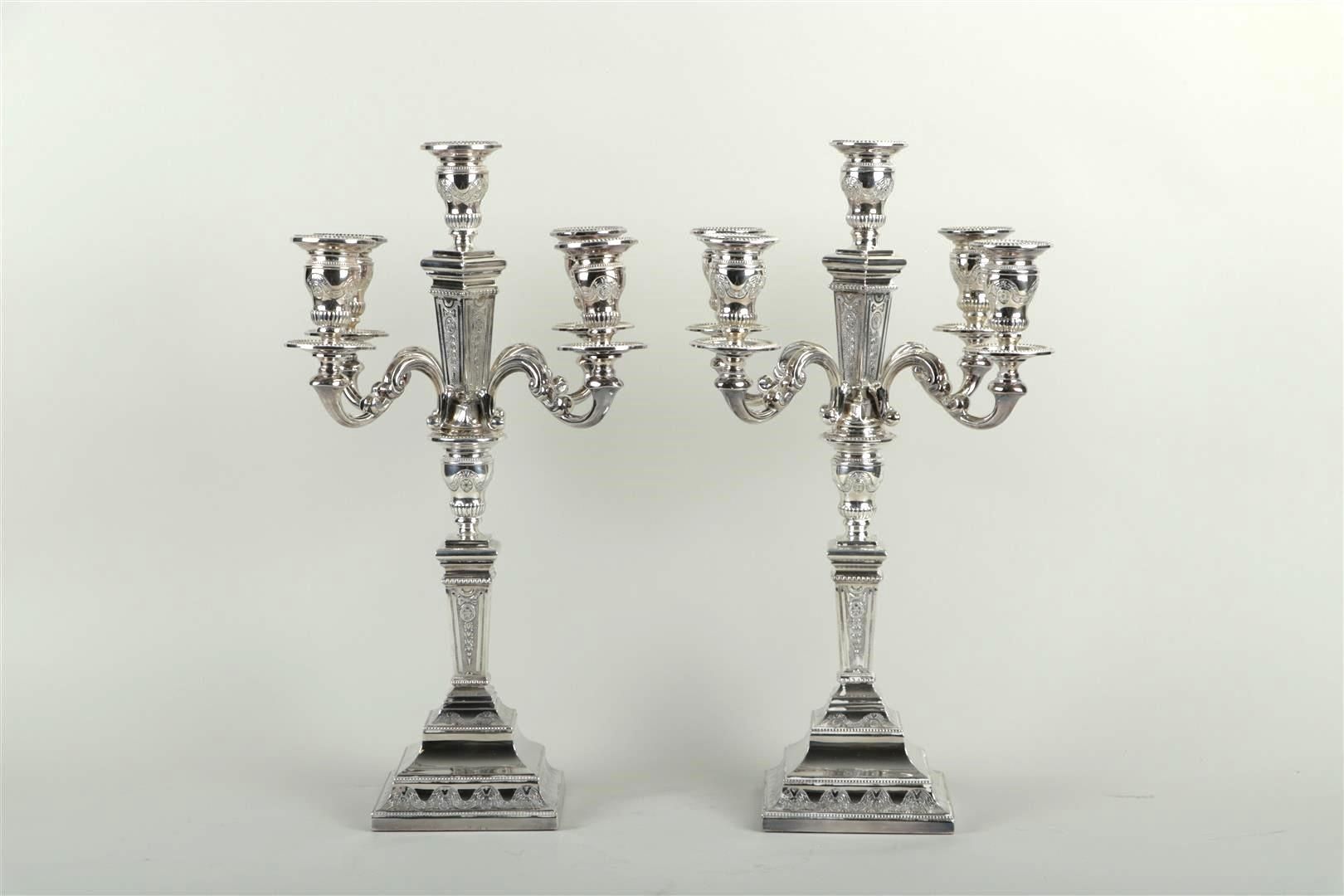 A set of (2) silver, five-armed candlesticks in Italian style, 2nd grade....