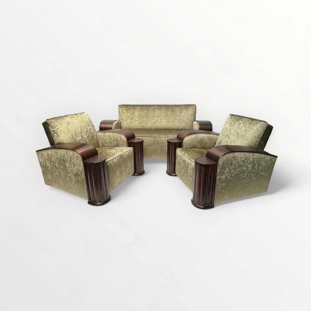 A 1930s Art Deco set consisting of (2) club chairs and a 2-seater sofa...