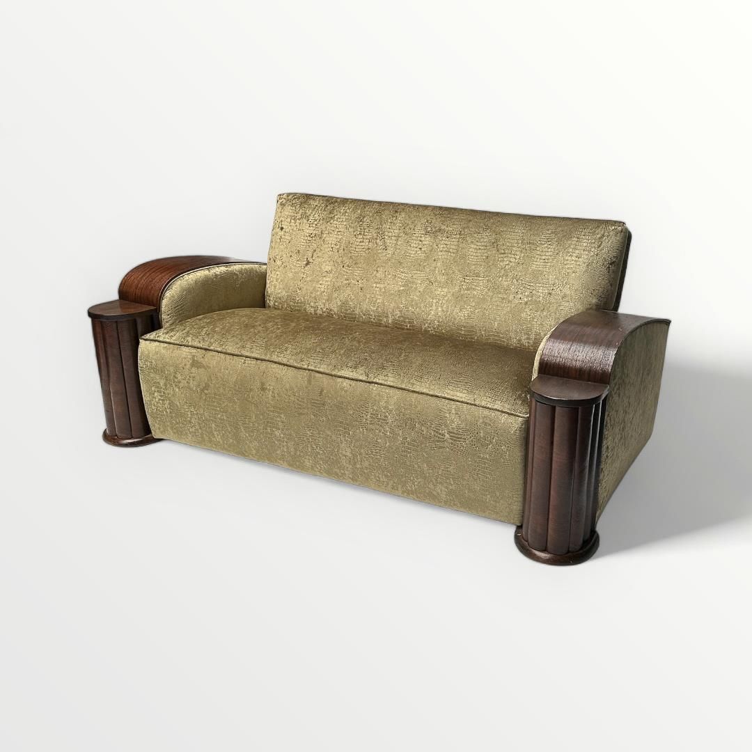 A 1930s Art Deco set consisting of (2) club chairs and a 2-seater sofa upholstered in modern light green fabric.