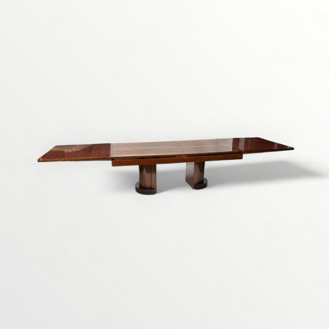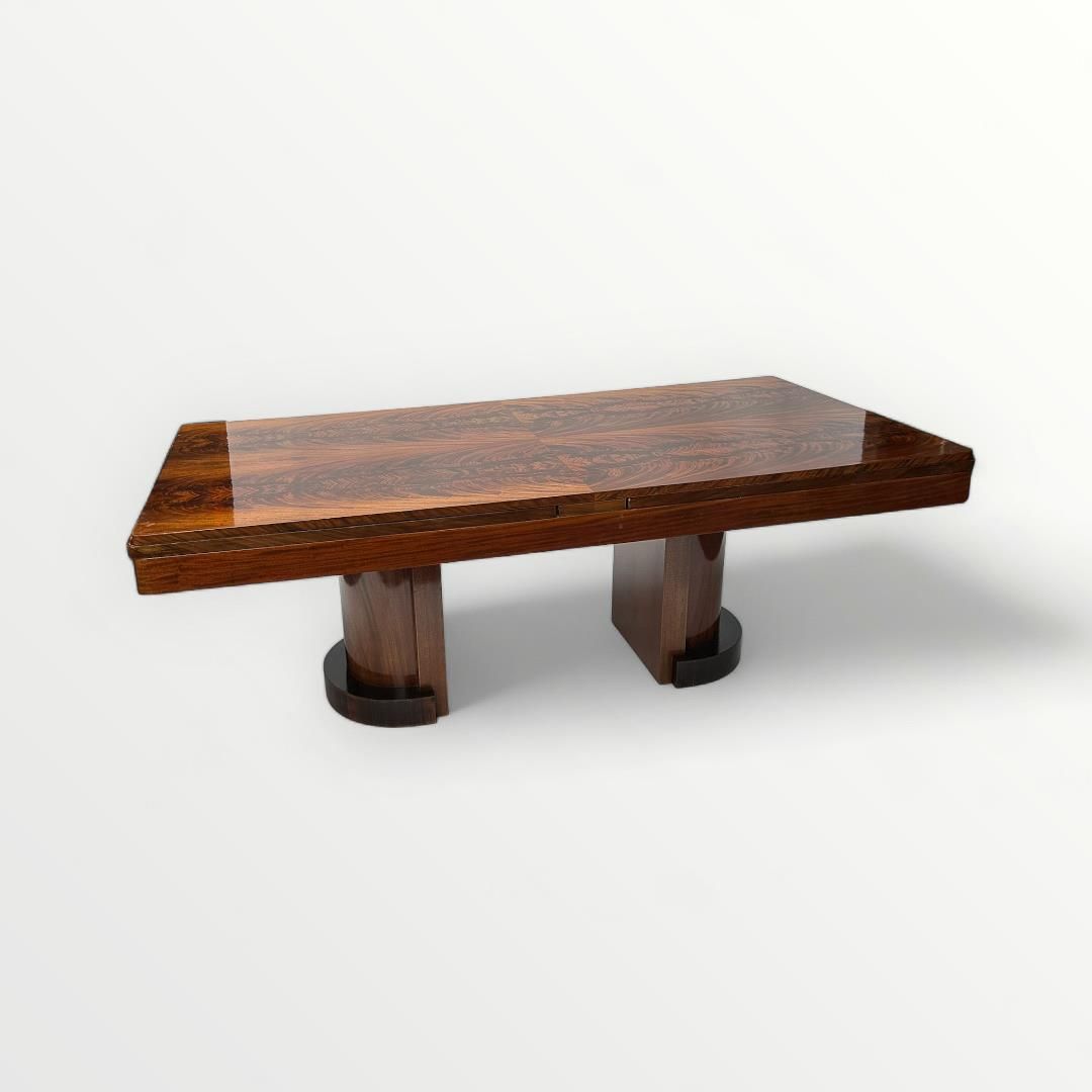 A large Art Deco dining table, extendable to 12 people. On top a hard glass...