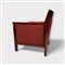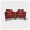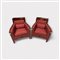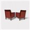 An Art Deco style Schuitema Decofarma armchairs model Rennie made of various types of wood including rosewood or bubinga, with ebony and aluminum details. The chairs upholstered with red fabric 'Presto'. Seat height: 45 x seat depth 55 x back height: total height 83 x total depth 70 x total depth 70 cm. Numbered: '923'.