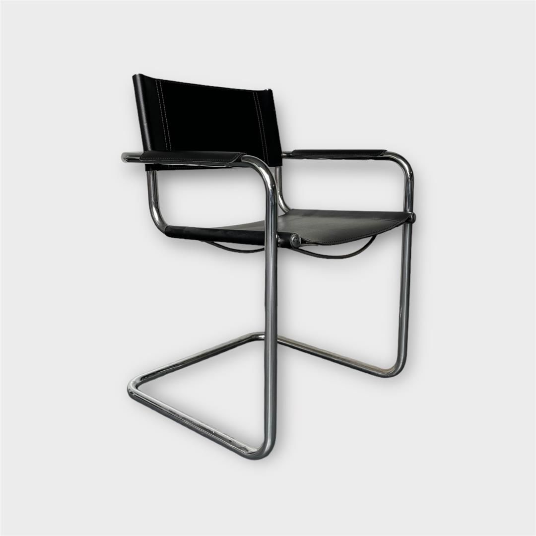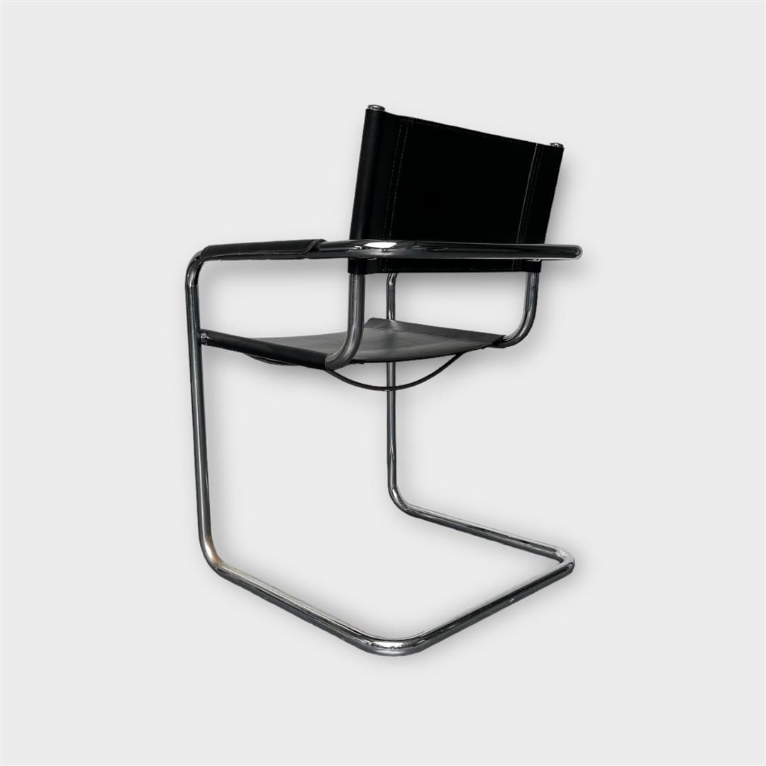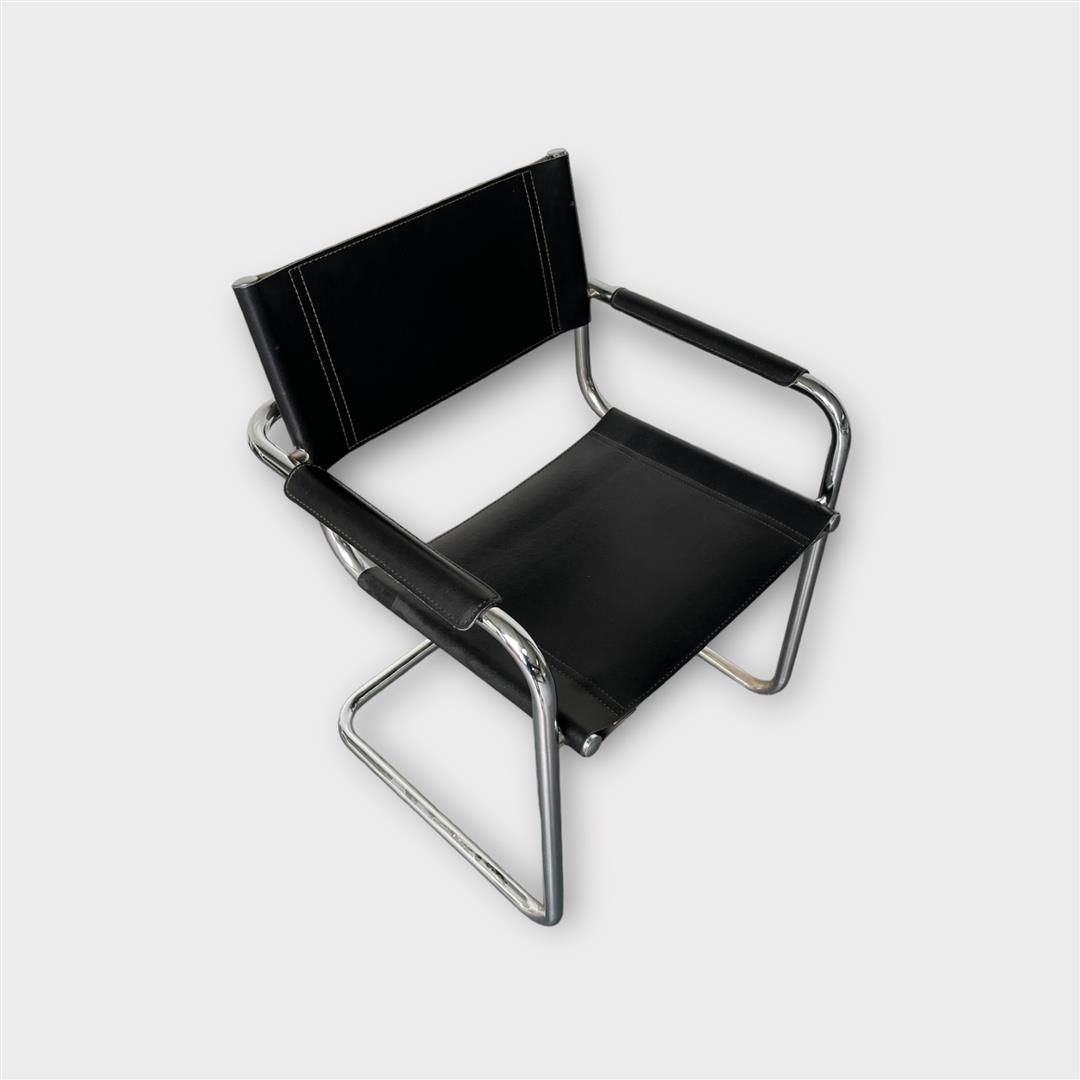 Tubular frame/design chairs black saddle leather/chrome, after Matteo Grassi, mid 20th century.