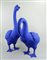 A set of two bronze geese in YKB Ultramarine blue. H. 72 & 55 cm.