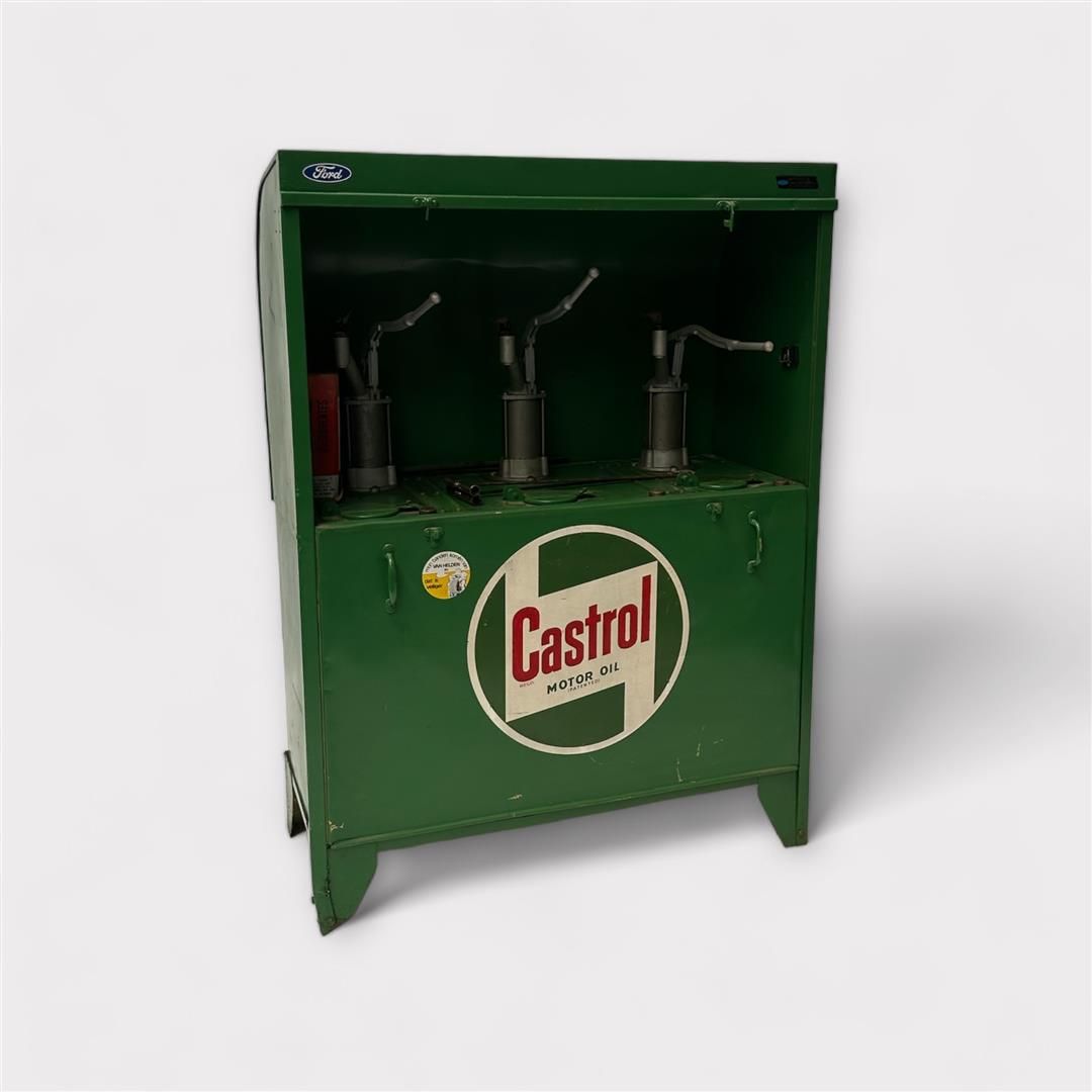 A mobile, three-pump, vintage, Gastrol oil dispenser. Not restored.
