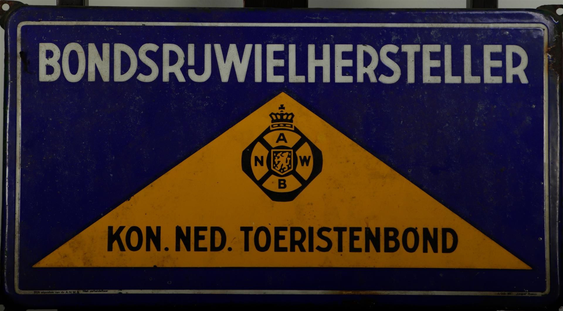 Lotto 237 | A vintage enamel ANWB sign 'Federal bicycle repairer'. 58 x 31 cm.