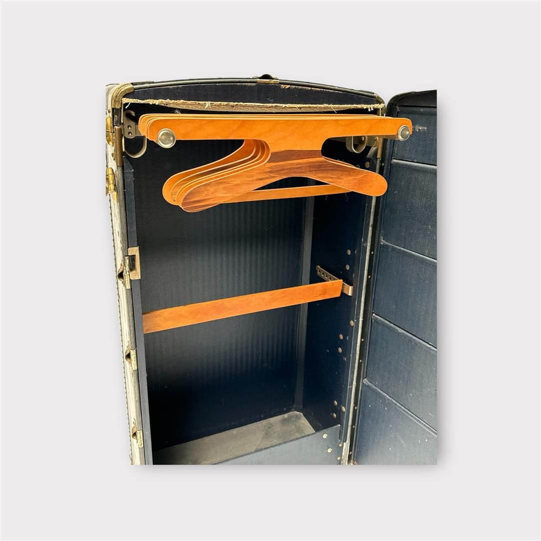 A vintage 'Steamer' / travel trunk, labelled 'American Trunk Co. Fal River, Ma.'. Fitted with brass fittings and contents.