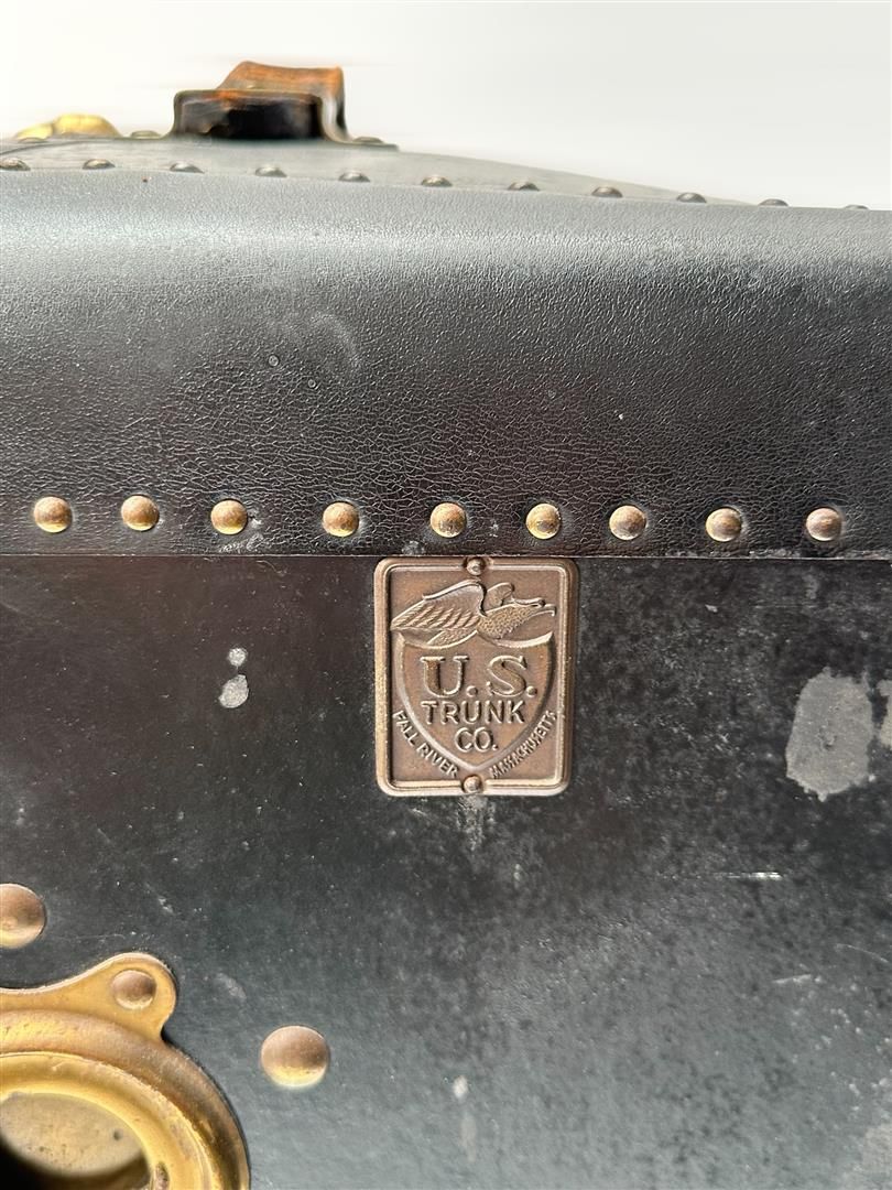 A vintage 'Steamer' / travel trunk, labelled 'American Trunk Co. Fal River,...