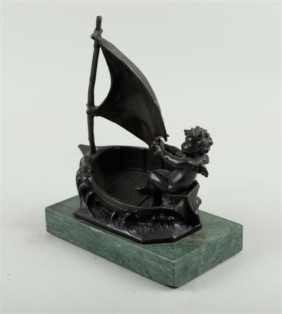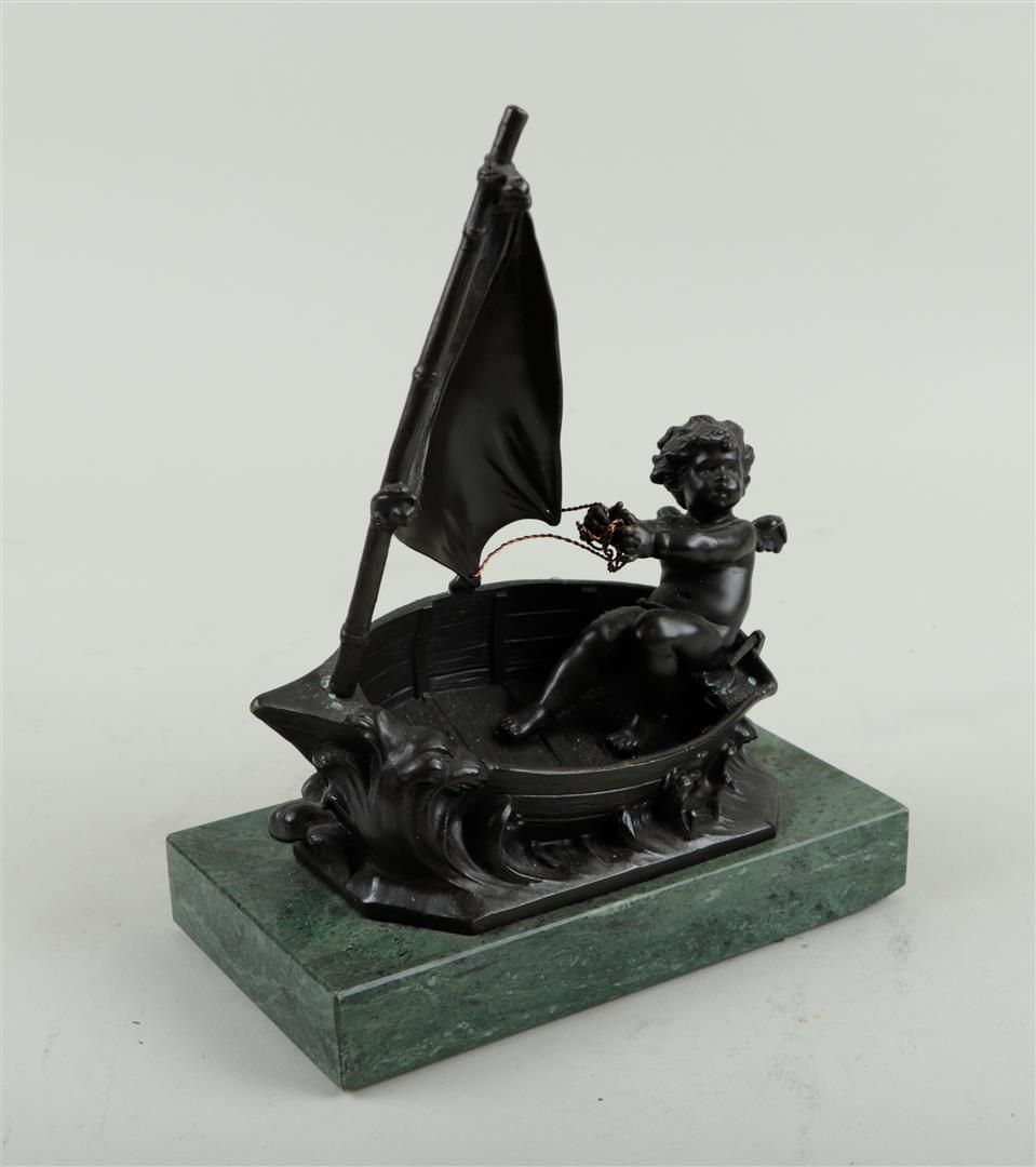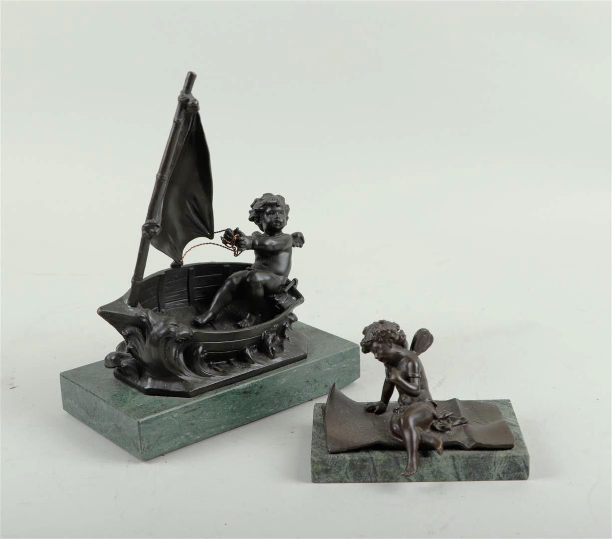 A lot consisting of (2) desk ornaments, one depicting a putto in a boat after...