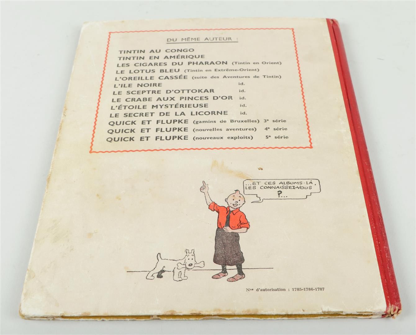 Hergé, Les Aventures de Tintin, Le Secret de la Licorne, Casterman publishers, Tournai - Paris, 62 pages in color, printed in Belgium, authorization numbers: 1785 - 1786 - 1787. 1943 (?).
