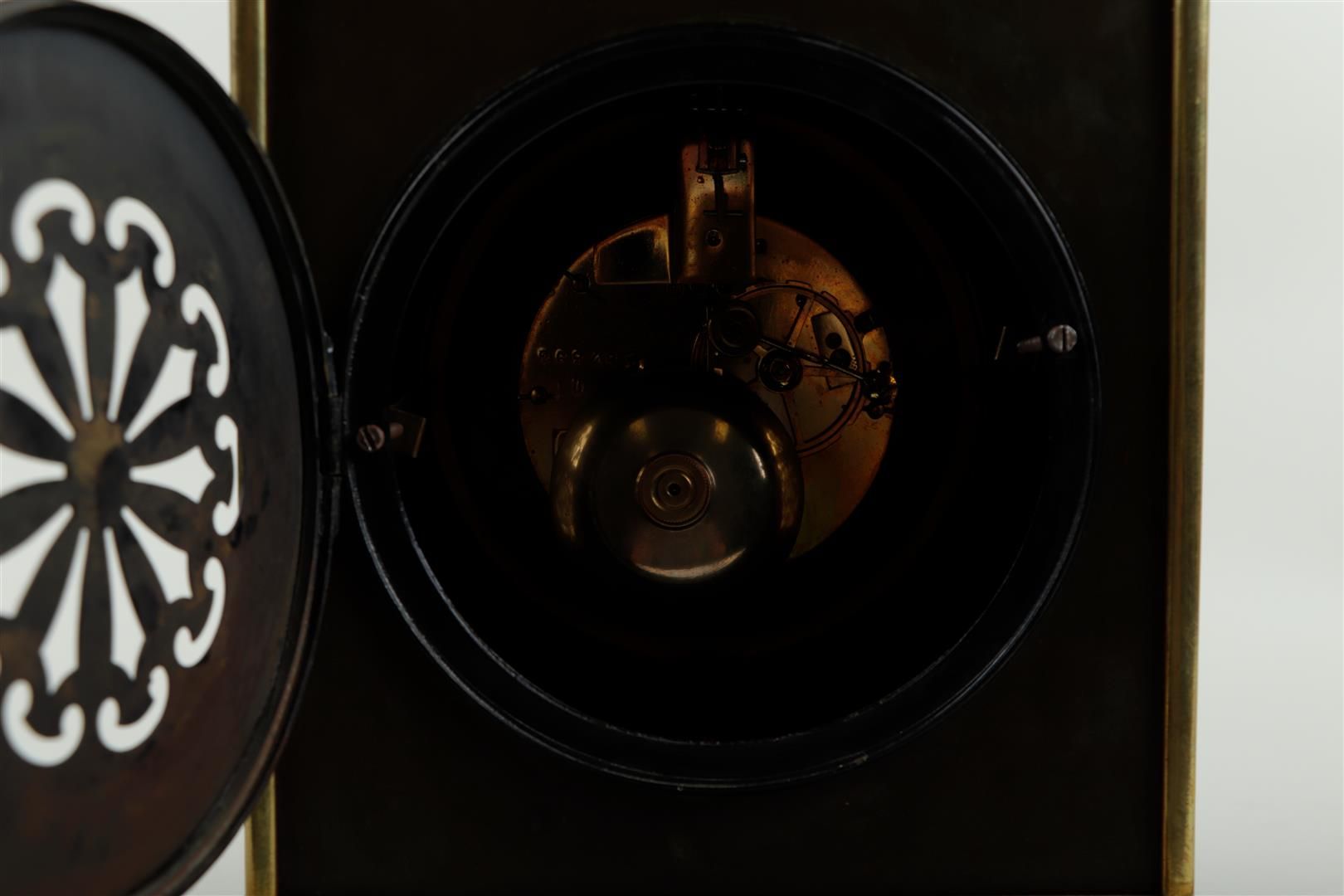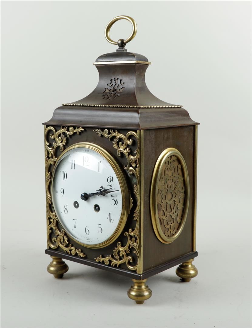 A large bronze officer's clock on ball feet, enamel dial with Arabic numerals. France, 19th century.