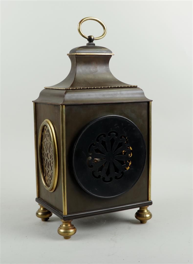 A large bronze officer's clock on ball feet, enamel dial with Arabic...