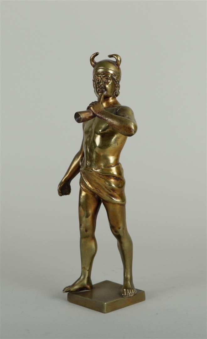 Hans Keck (1875-1941), bronze sculpture of a Germanic man with horn. Signed...